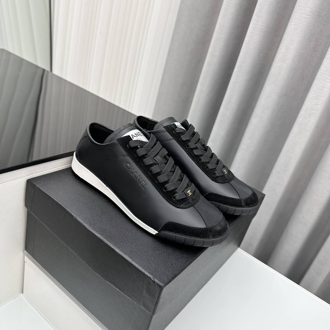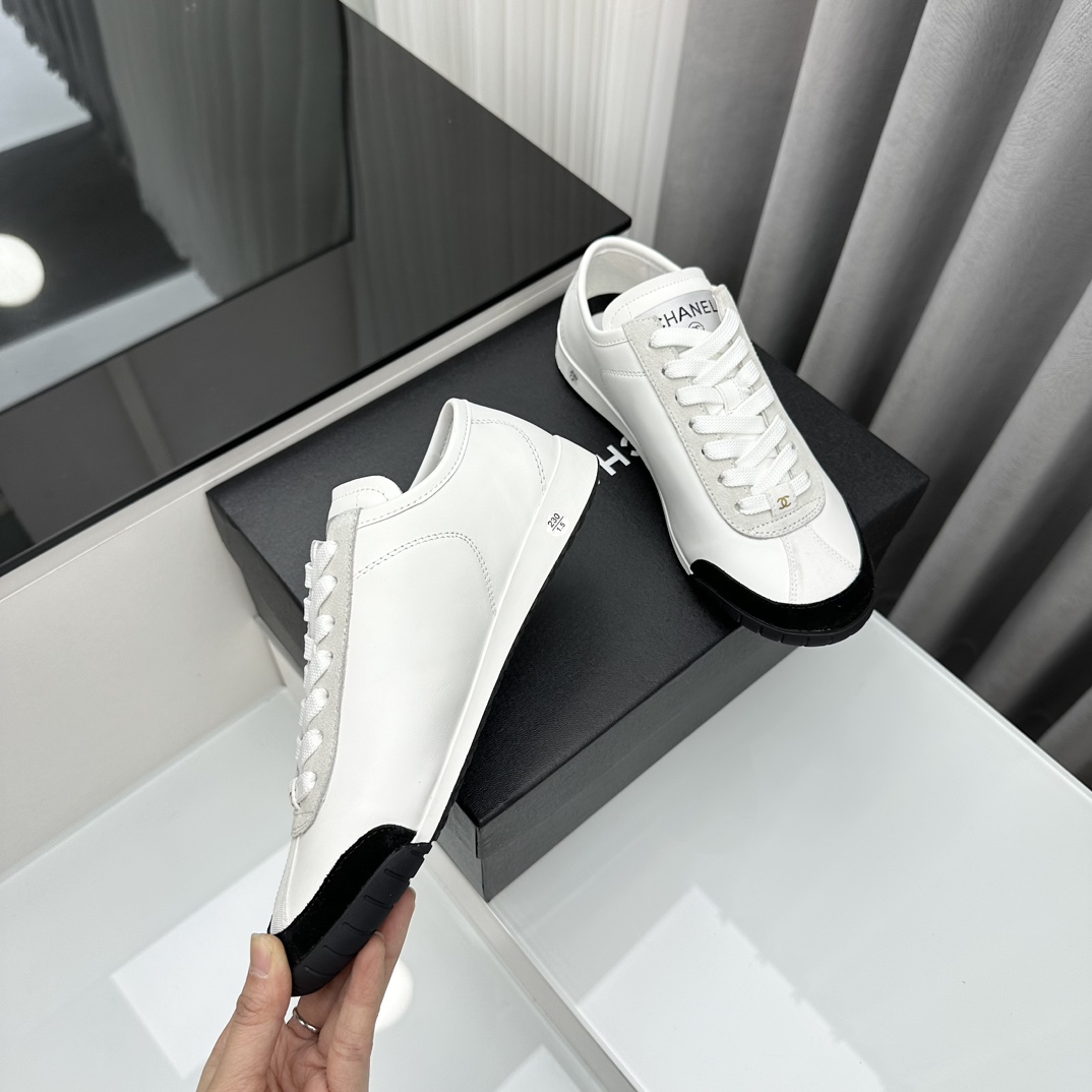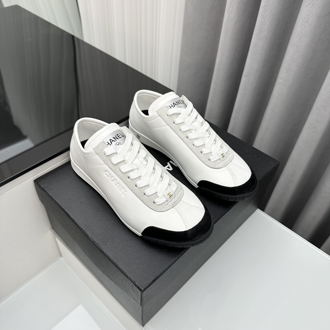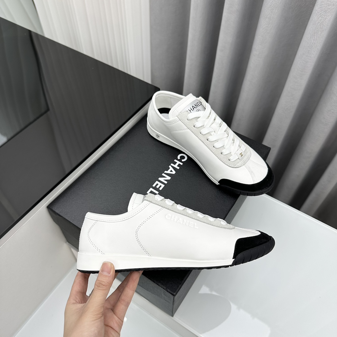 샤넬 스니커즈 카프스킨, 벨벳 카프스킨 화이트, 블랙