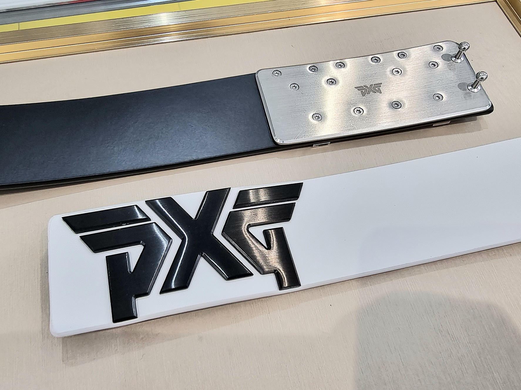 PXG Leather Black Buckle logo belt > 골프