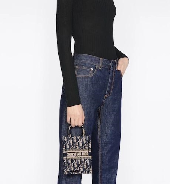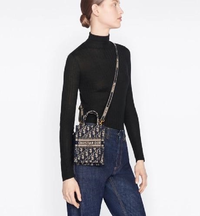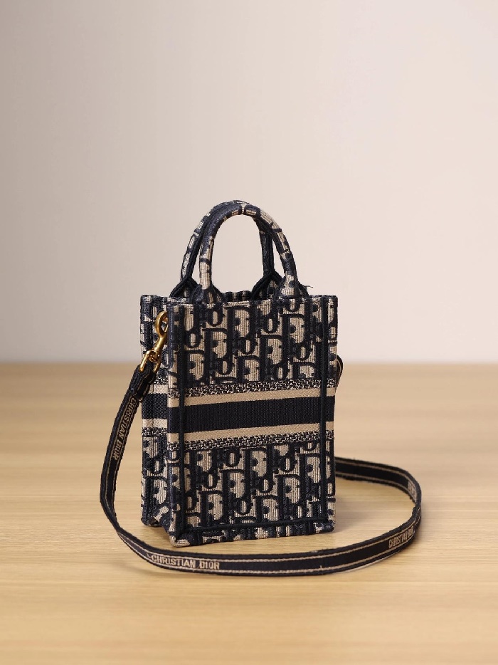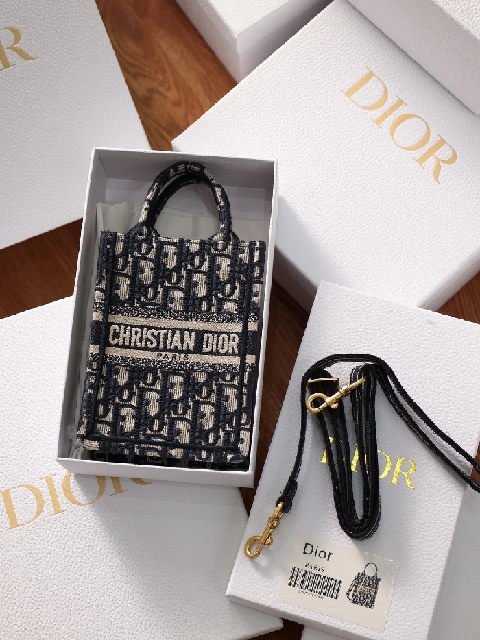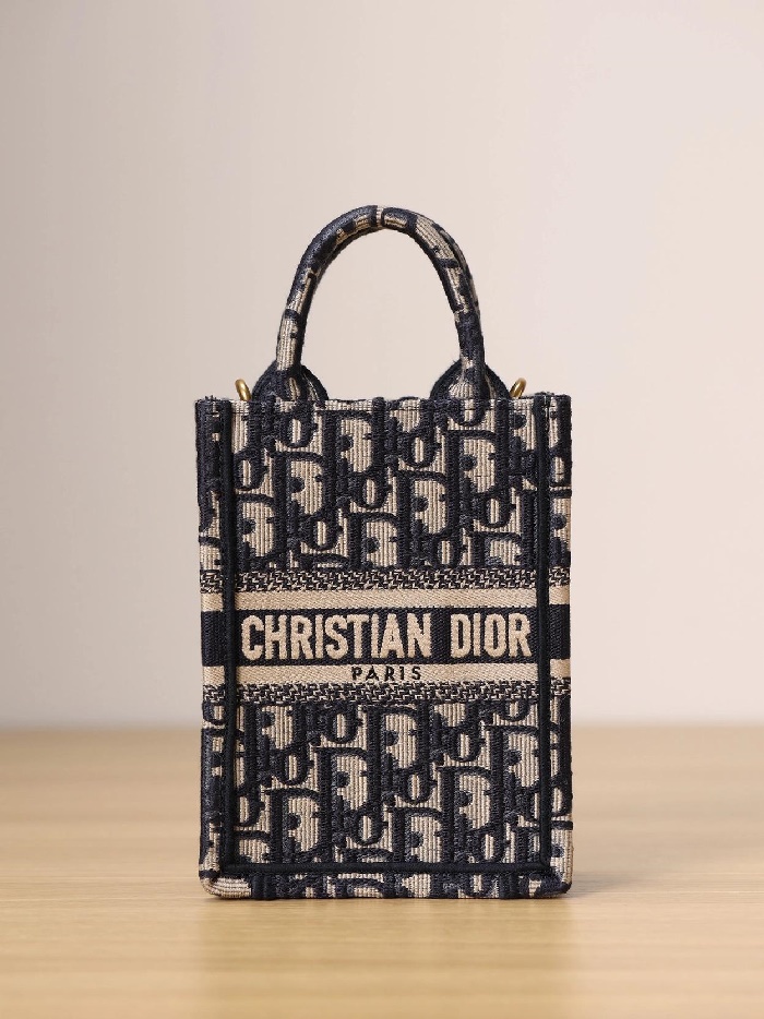 Dior 디올 여성 블루 오블리크 자수 북 토트 미니 휴대폰 백 > 가방