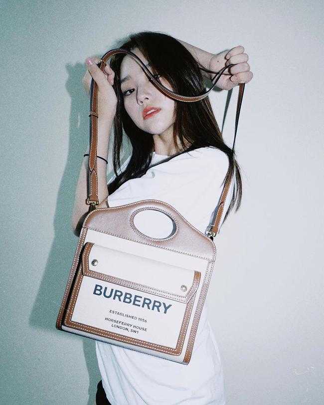 [가수 이하이] Burberry 버버리 투톤 캔버스 레더 포켓백