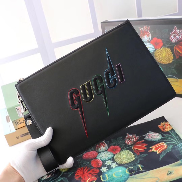 Gucci 2020 Mm /Wm Leather Clutch Bag ,30CM - 구찌 2020 남여공용 레더 클러치백 597678,GUB1010,30cm,블랙 > 가방