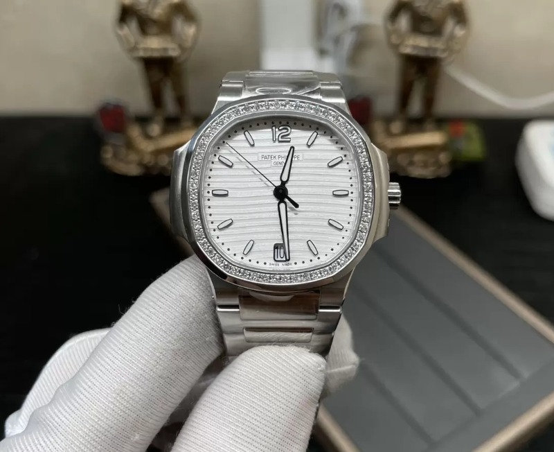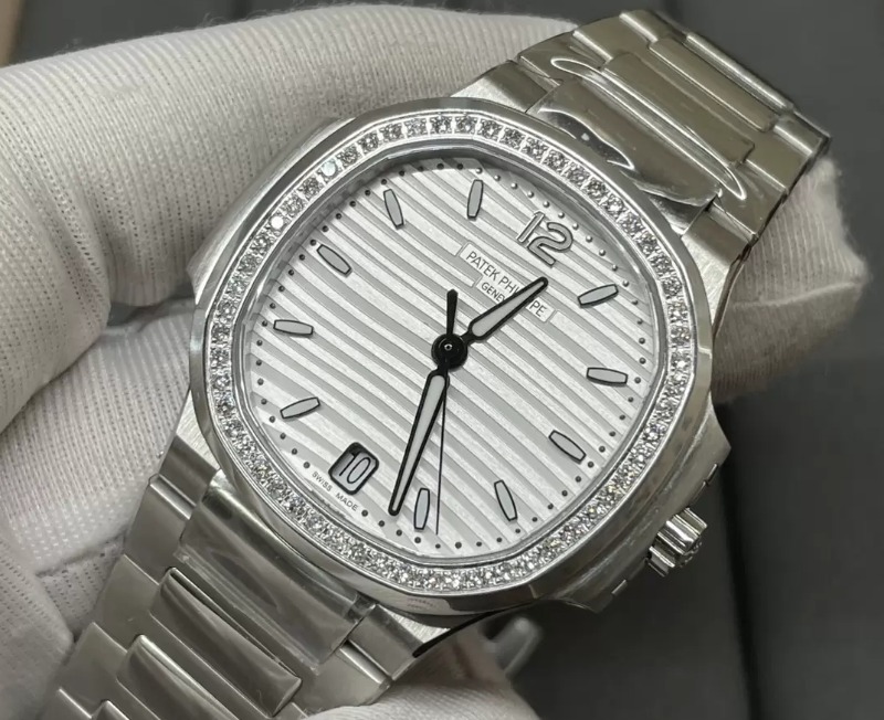 PATEK PHILIPPE 파텍필립 노틸러스 7118 화이트 다이얼 다이아 베젤 34mm 여성용 > 시계
