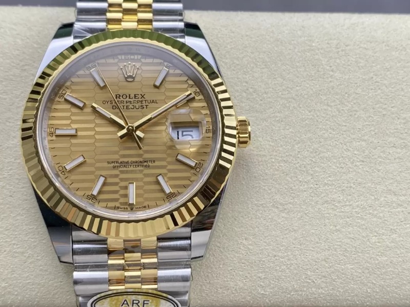 ROLEX 로렉스 데이저스트 YG 텍스처 스틱 옐로우 골드 다이얼 콤비 쥬빌레 41mm 126333-0012 > 시계