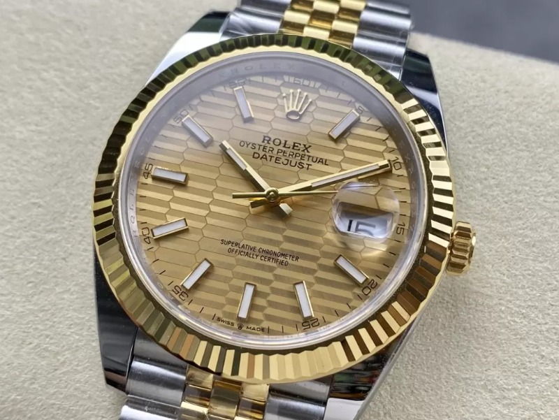 ROLEX 로렉스 데이저스트 YG 텍스처 스틱 옐로우 골드 다이얼 콤비 쥬빌레 41mm 126333-0012