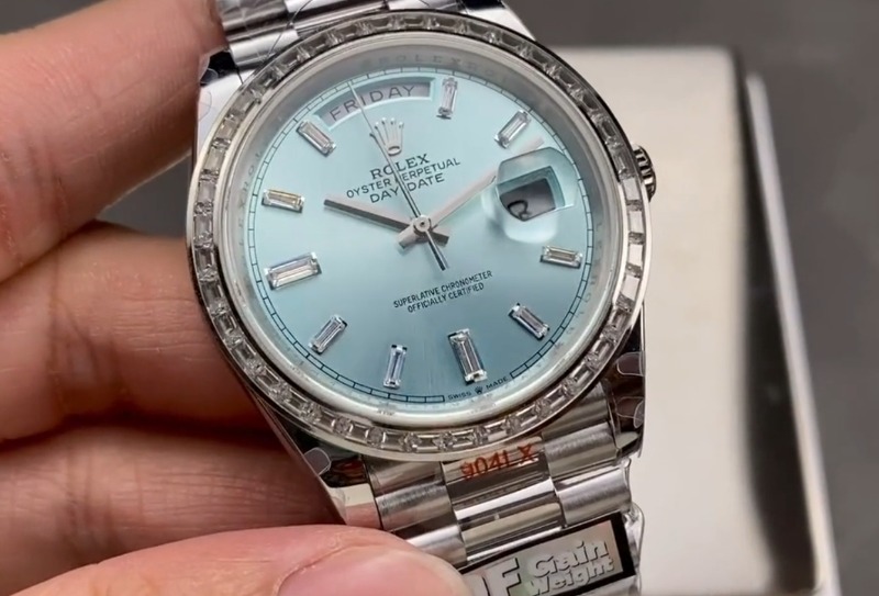 ROLEX 로렉스 데이데이트 플래티넘 다이아 다이얼 바게티 다이아 베젤 화이트 골드 10P 40mm