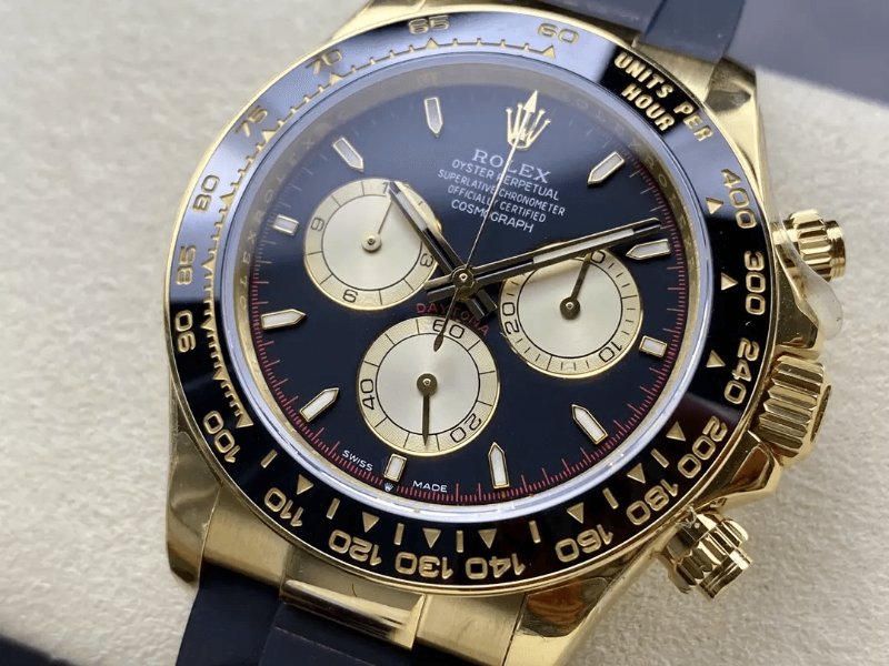 ROLEX 로렉스 텅스텐 크로노그래프 데이토나 레이싱 다이얼 옐로우 골드 러버밴드 m126515