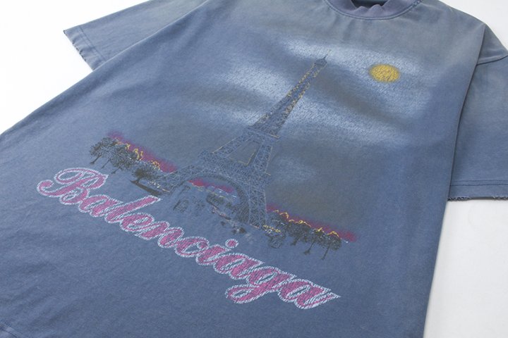 BALENCIAGA 발렌시아가 파리 문 로고 구제 워싱 반팔 > 의류
