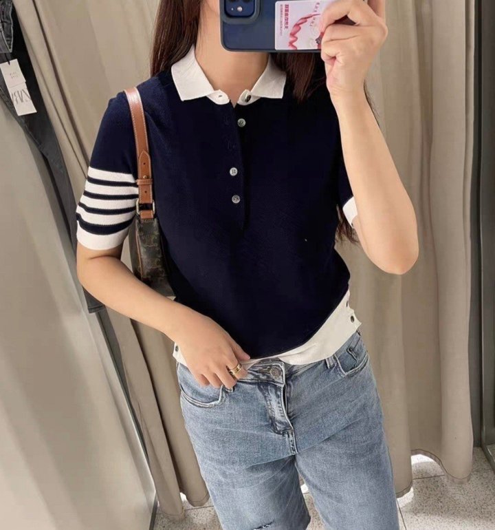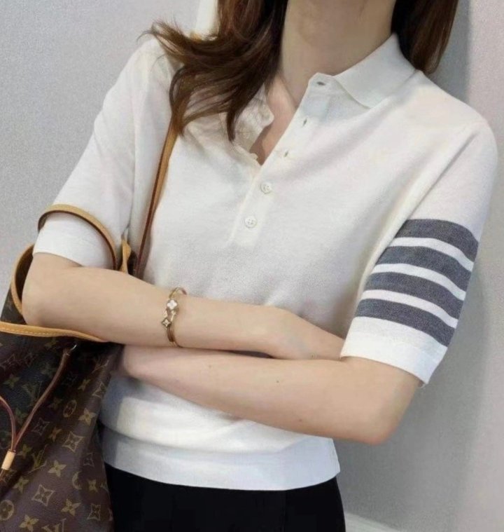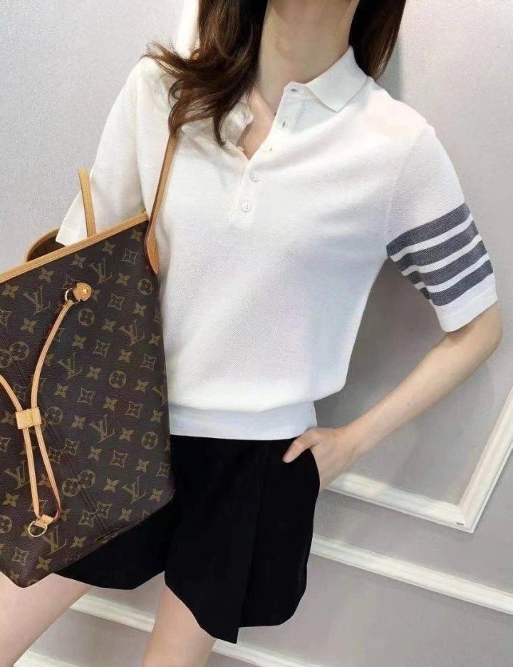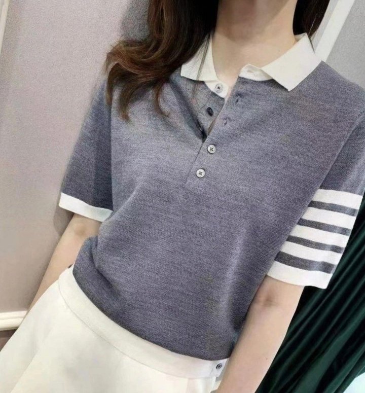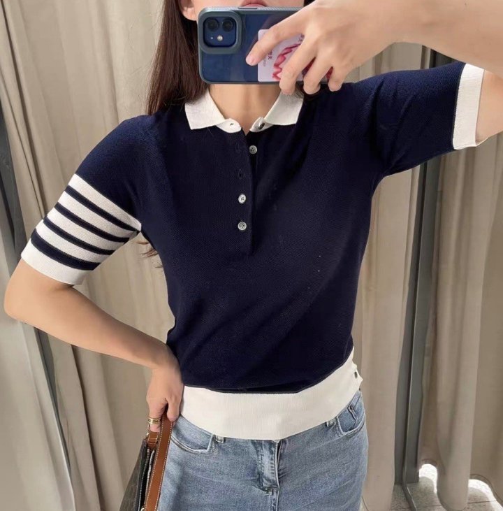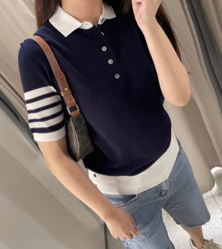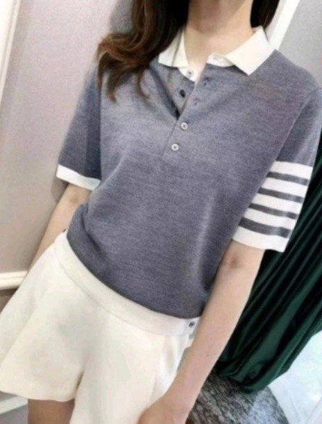 [THOM BROWNE 톰브라운 단추 카라 반팔 니트 > 의류