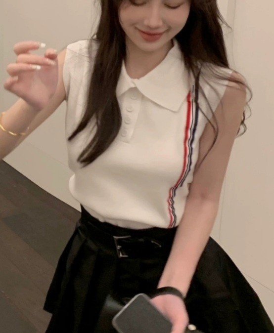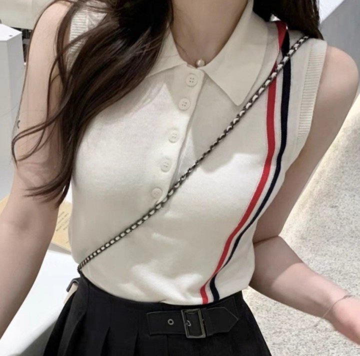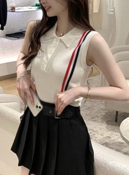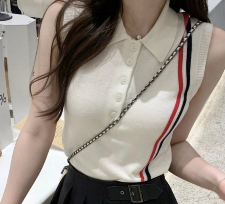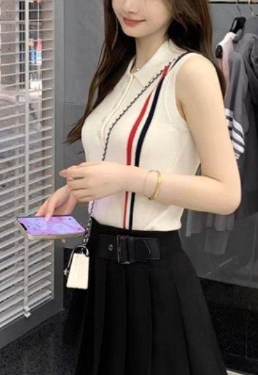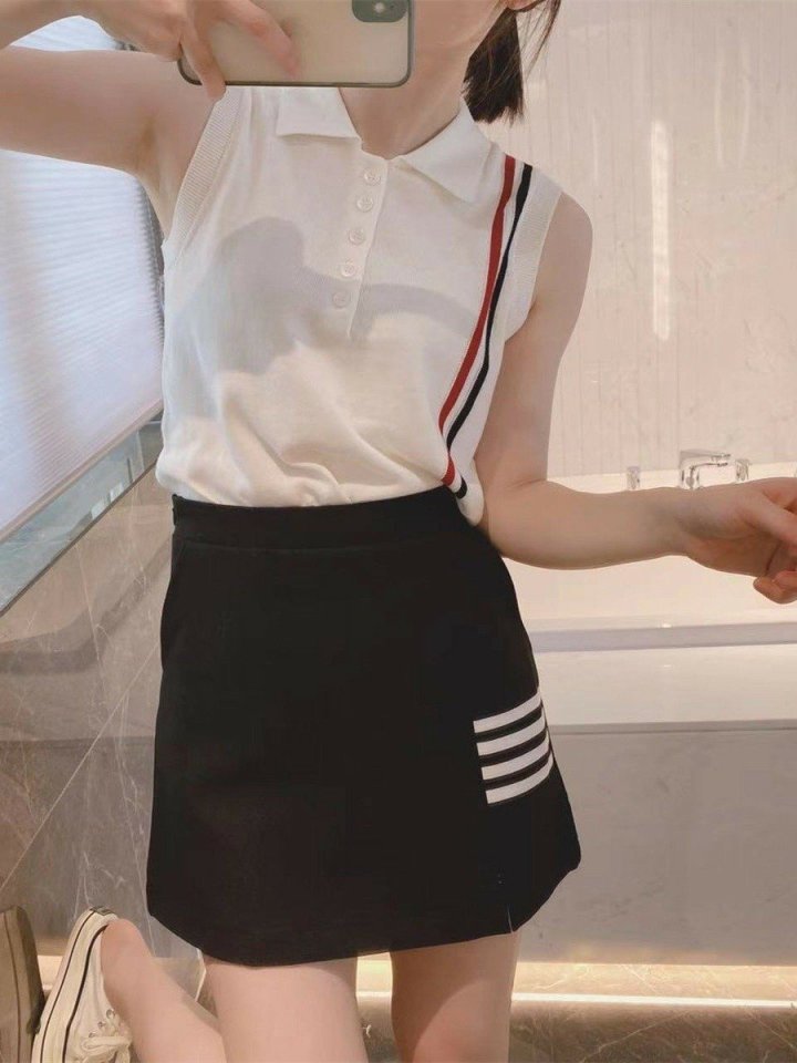 Thom Browne 톰브라운 삼선 민소매 카라 반팔 니트 > 의류