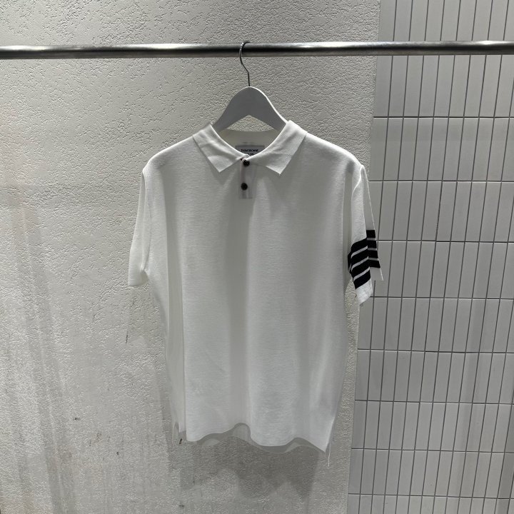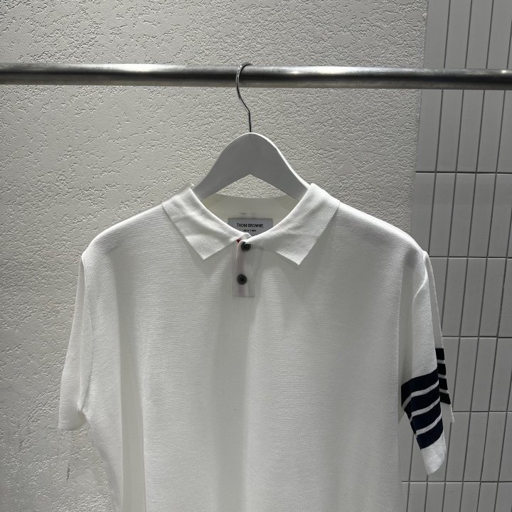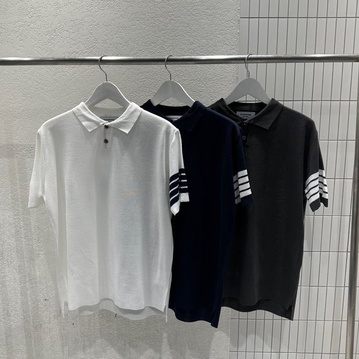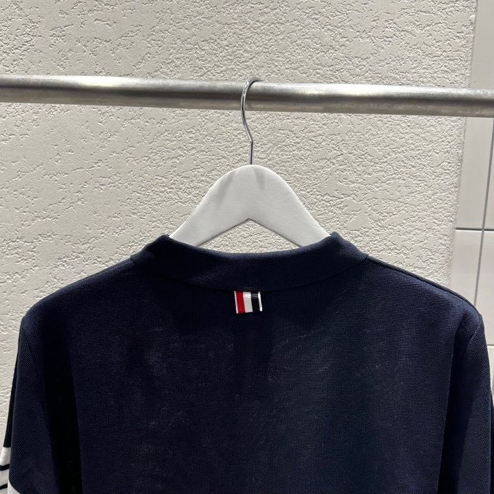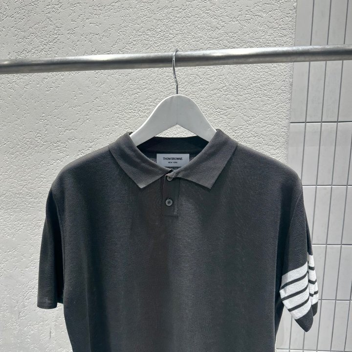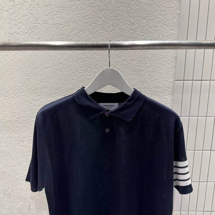 Thom Browne 톰브라운 투버튼 사선 반팔 카라 니트 > 의류