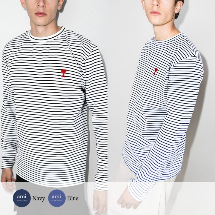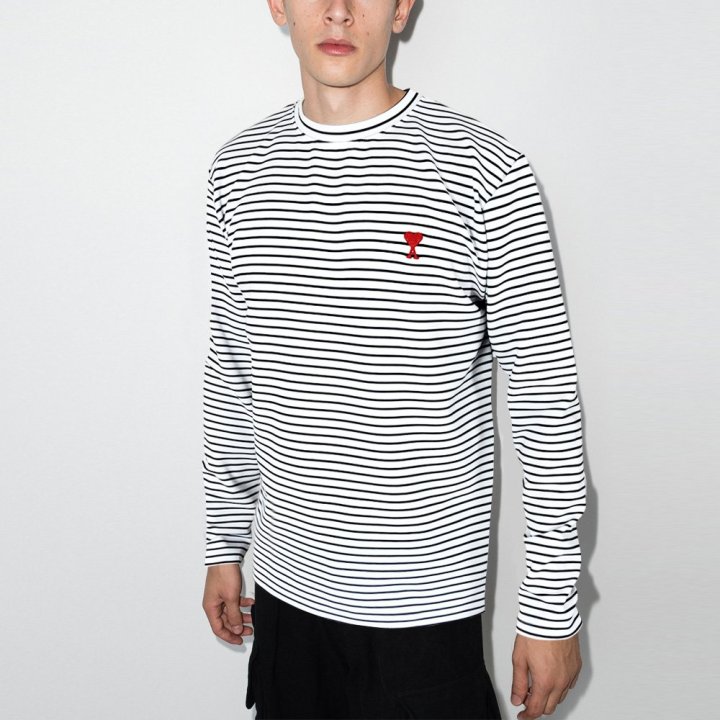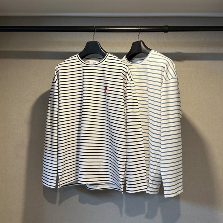 AMI 아미 드 꾀흐 스트라이프 슬라브 티셔츠 > 의류
