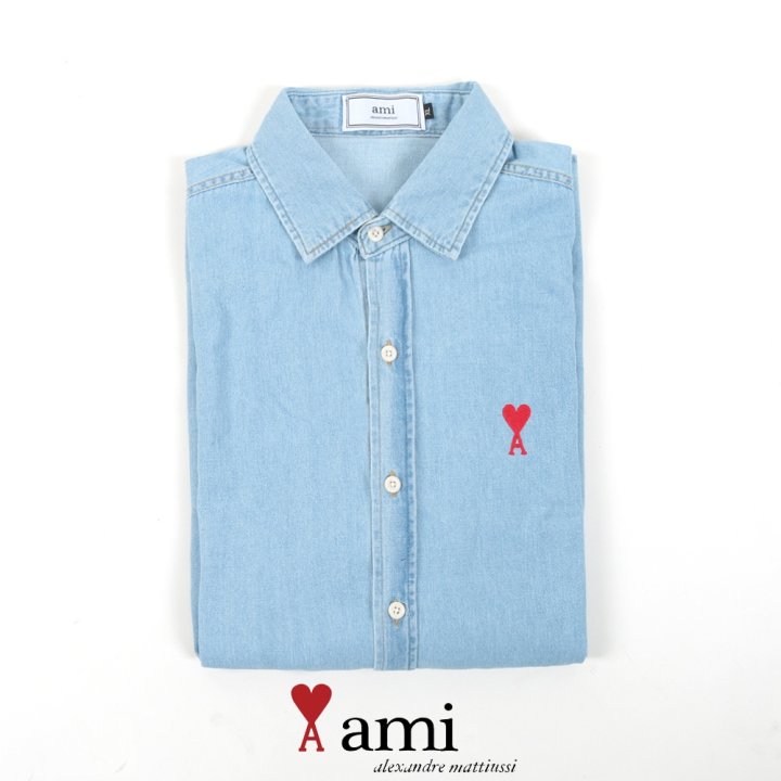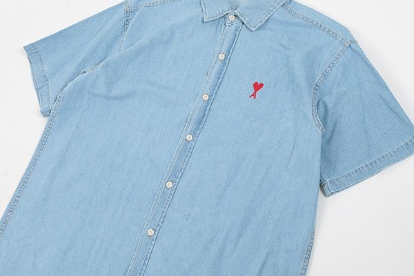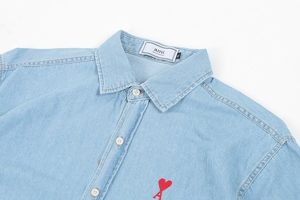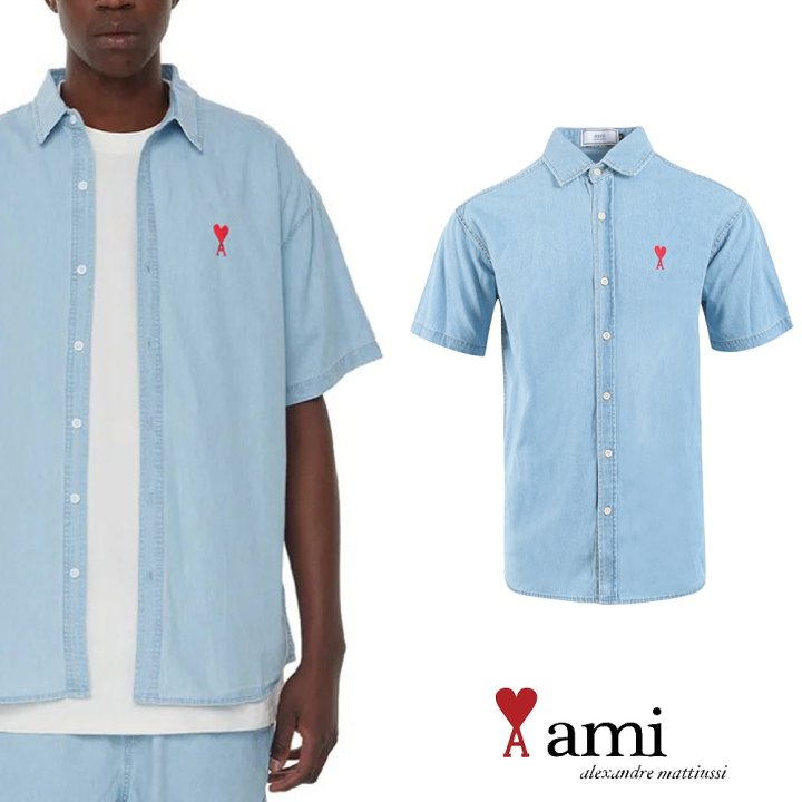 AMI 드 꾀흐 워싱 데님 하프셔츠 > 의류
