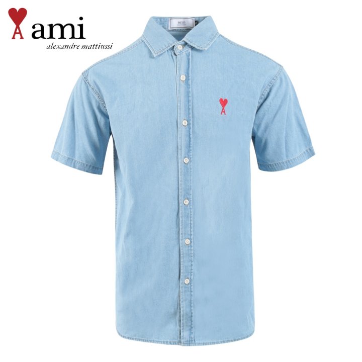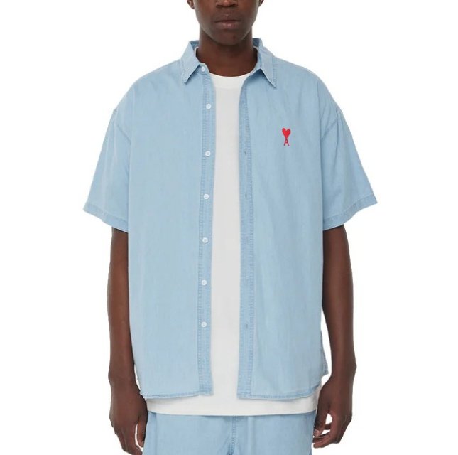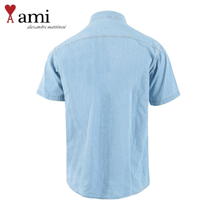 AMI 드 꾀흐 워싱 데님 하프셔츠