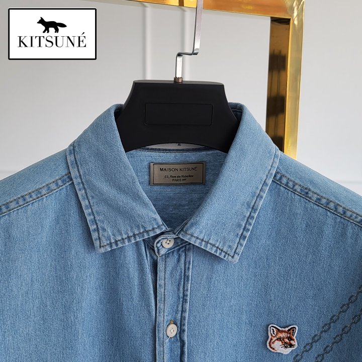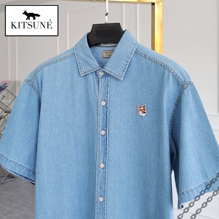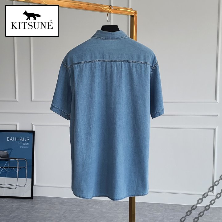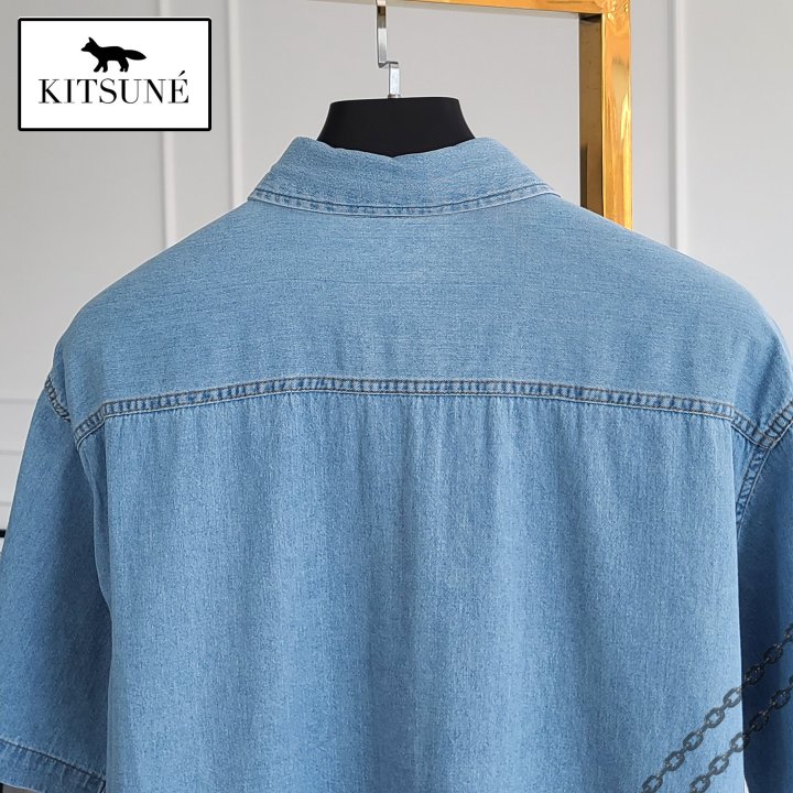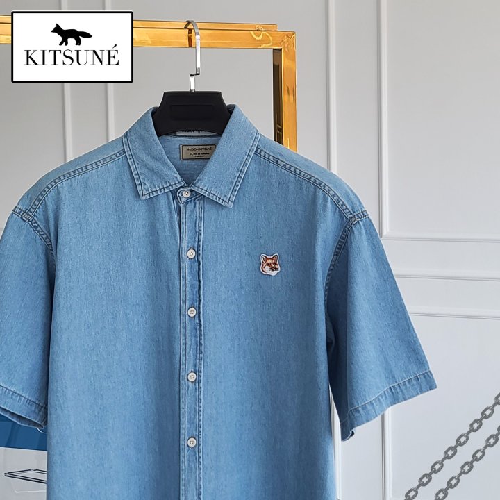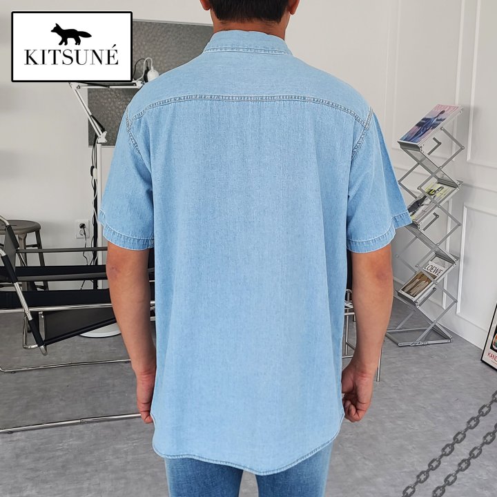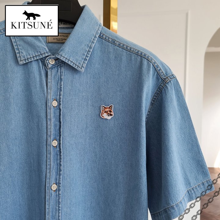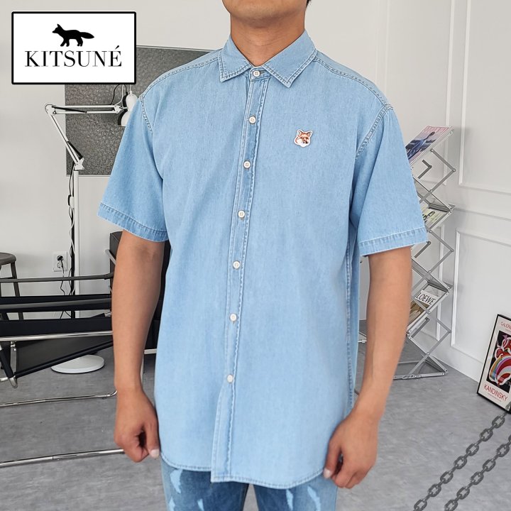Maison Kitsune 메종키츠네 폭스헤드 오버핏 데님 반팔 셔츠 > 의류