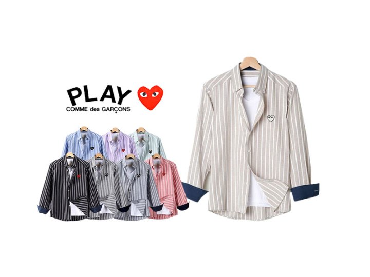 Comme des Garcons 꼼데가르송 하트 루즈핏 스트라이프 옥스포드 셔츠 > 의류