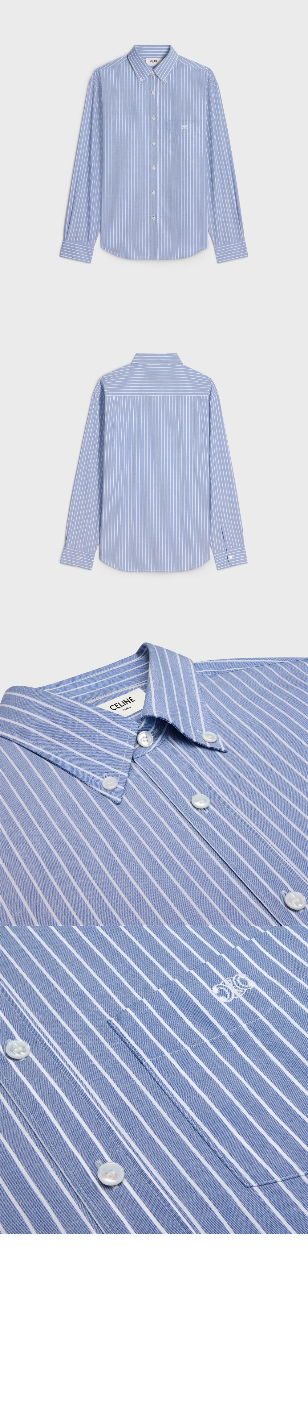 셀린느 케임브리지 셔츠 스트라이프 샴브레이 코튼 2C16B4 > 의류