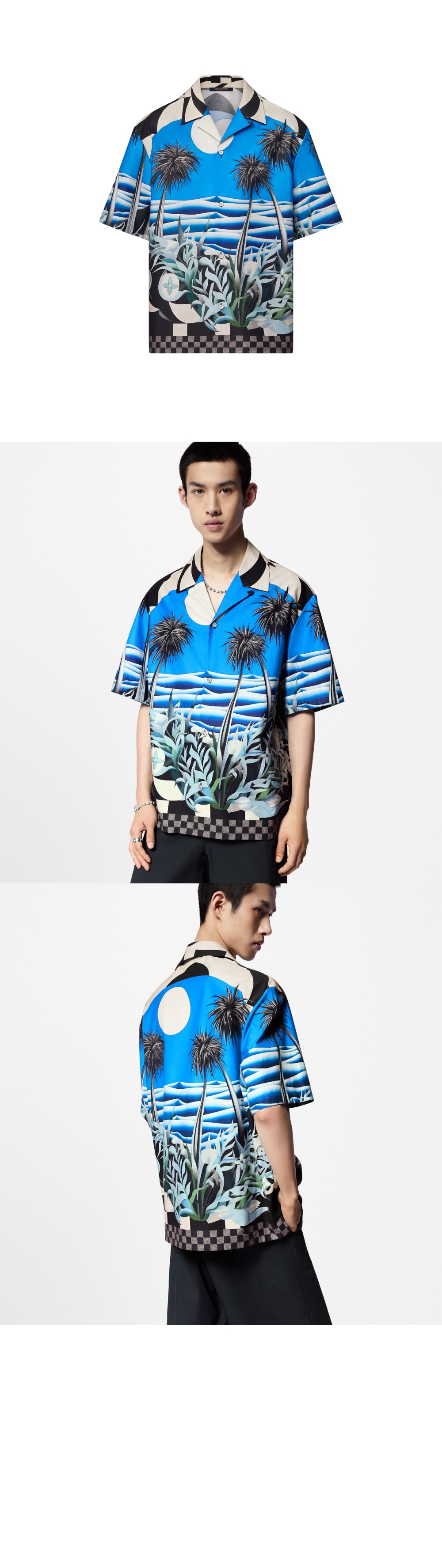 루이비통 프린티드 쇼트 슬리브드 코튼 셔츠 1AFQYH