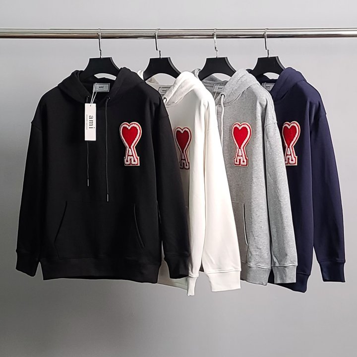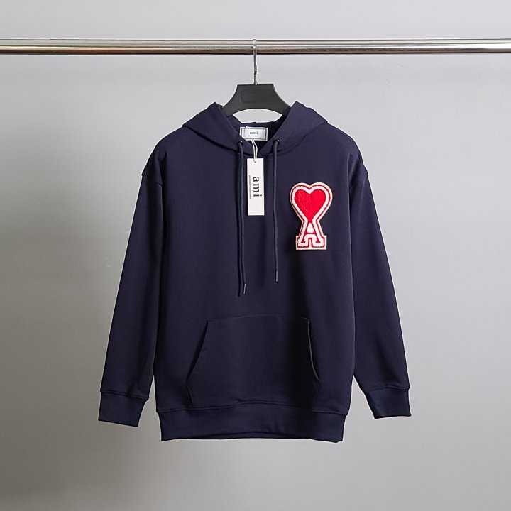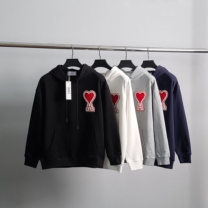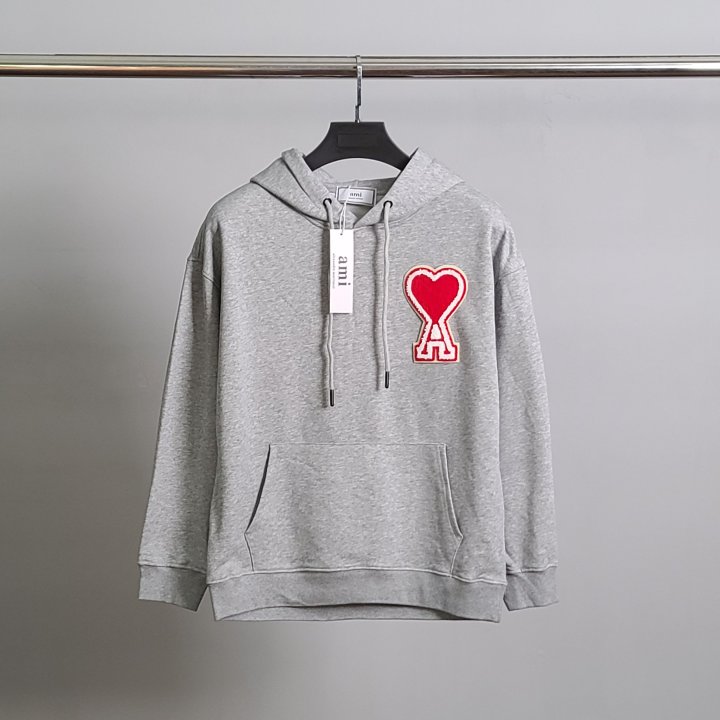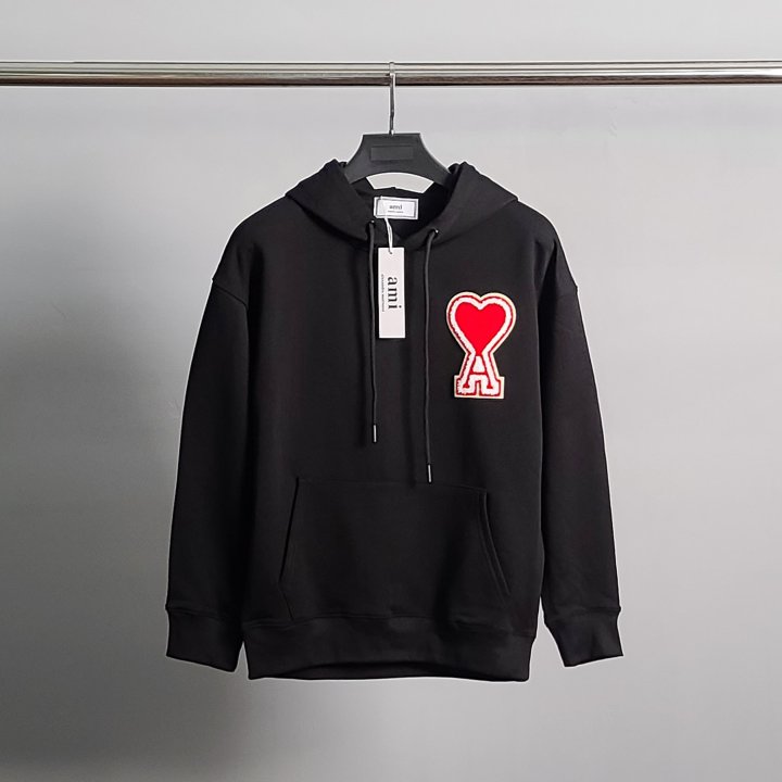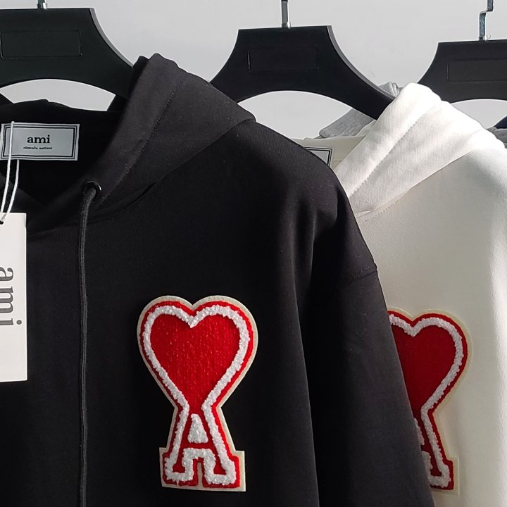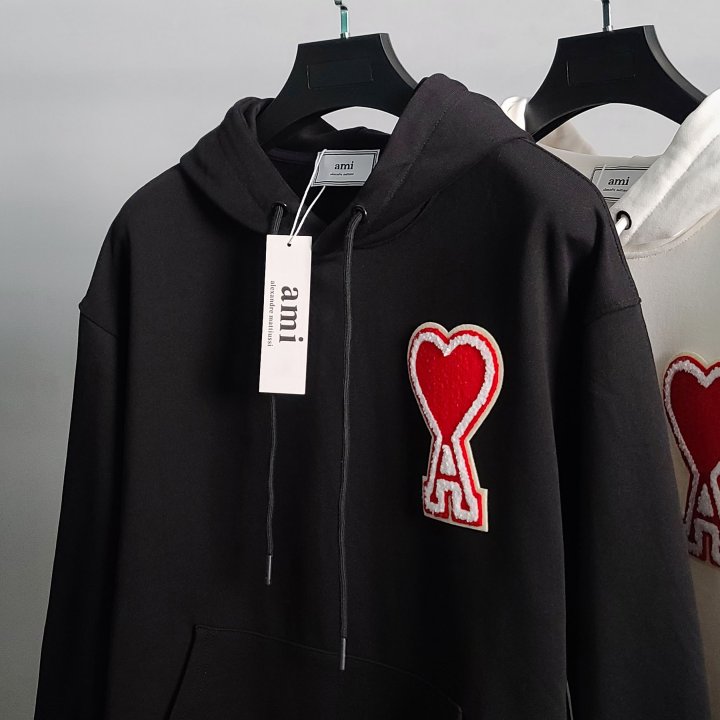 AMI 아미 빅하트패치 코튼 후드티