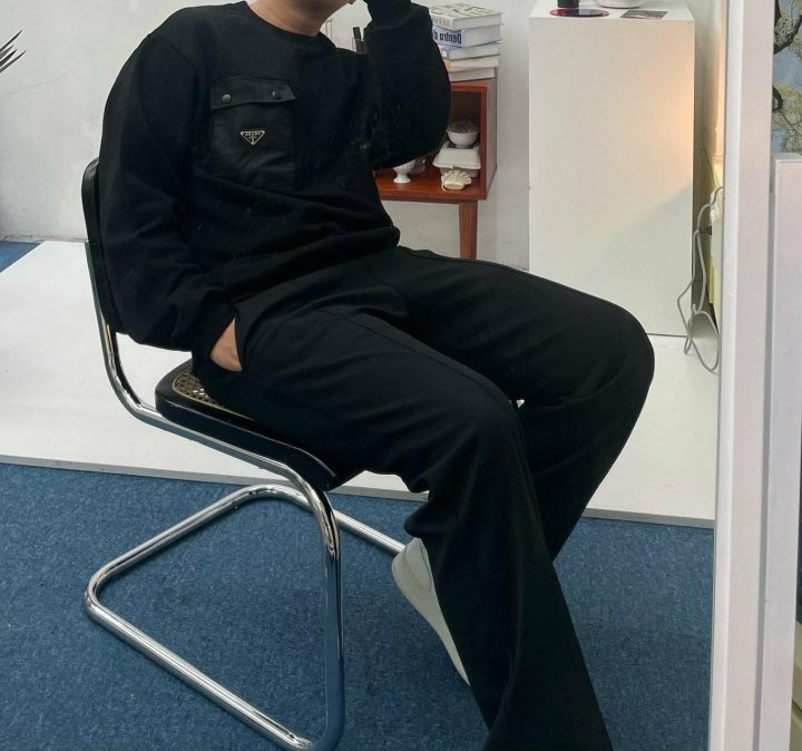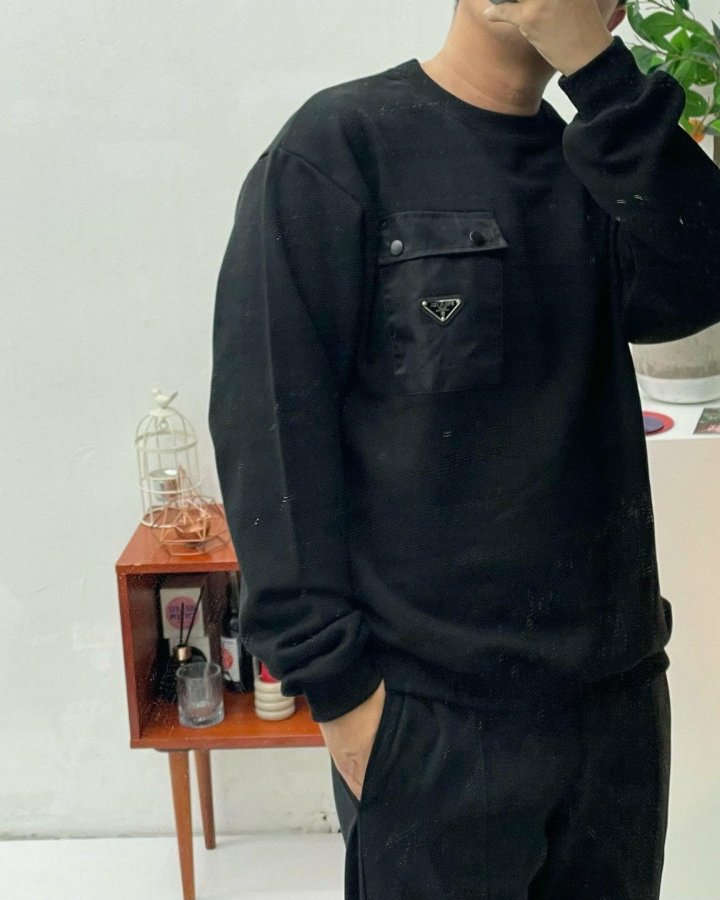 PRADA 프라다 메탈 플레이트 나일론 포켓 맨투맨 > 의류