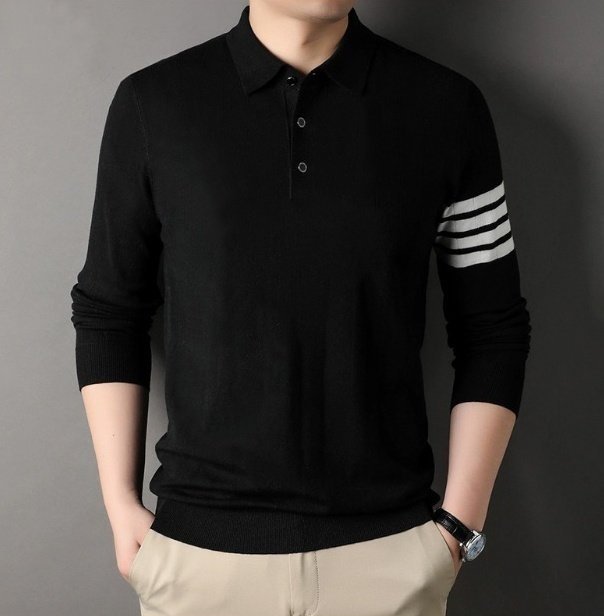 THOM BROWNE 톰브라운 사선완장 울 니트카라티 > 의류