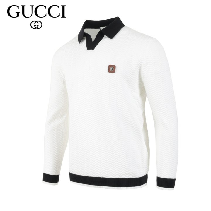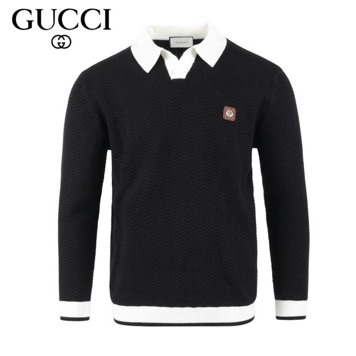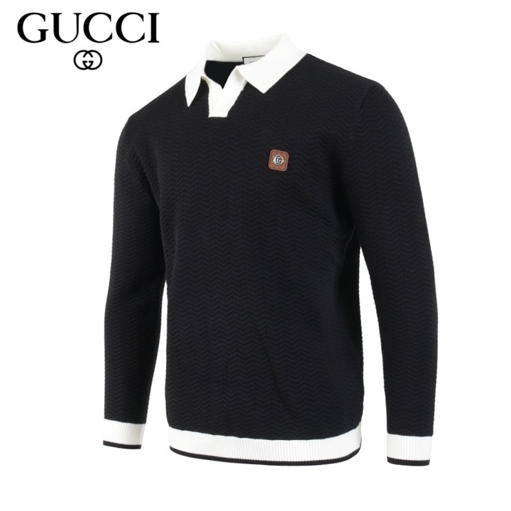 GUCCI 구찌 스틸로고 배색 카라 롱슬리브 니트 > 의류