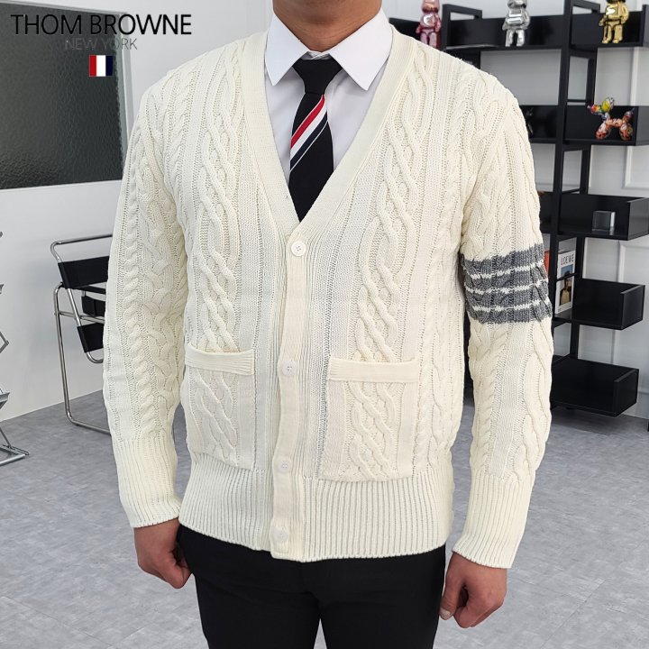 Thom Browne 톰브라운 사선완장 아란 케이블 가디건 > 의류