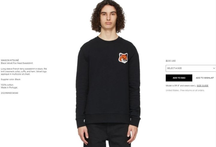 Maison Kitsune 메종키츠네 벨벳 빅폭스 헤드 스웻 맨투맨 > 의류