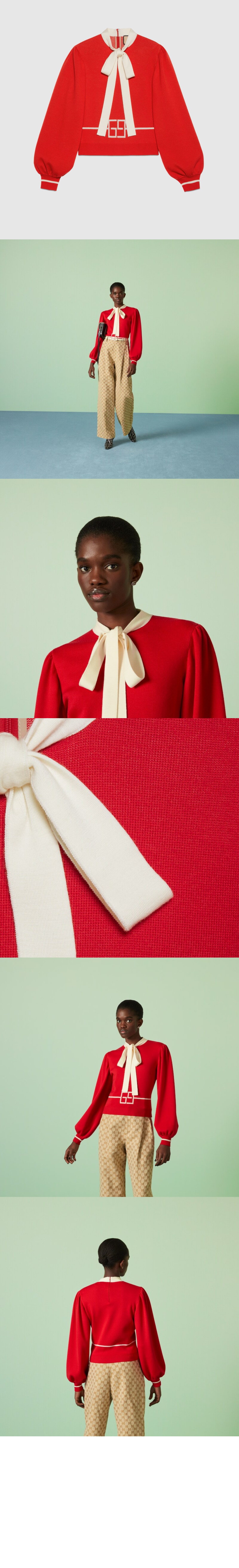 구찌 스퀘어 GG 울 자카드 니트 탑 676829