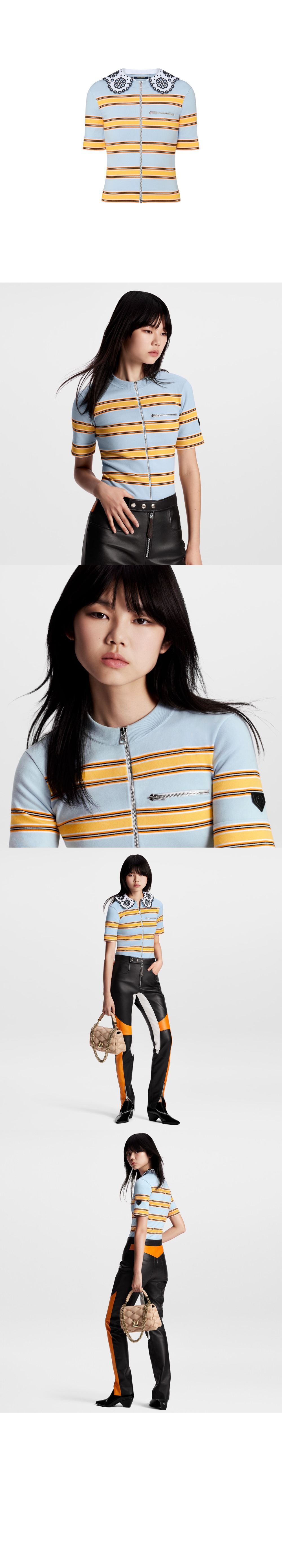 루이비통 칼라 디테일 스트라이프드 니트 톱 1AFUAB