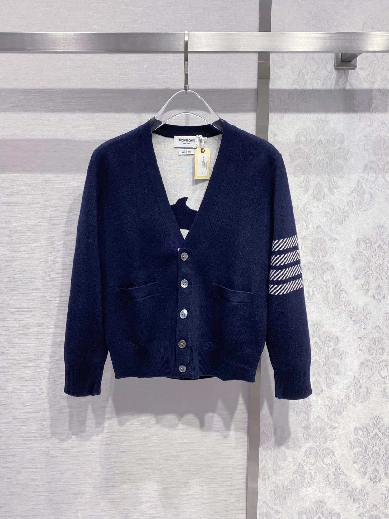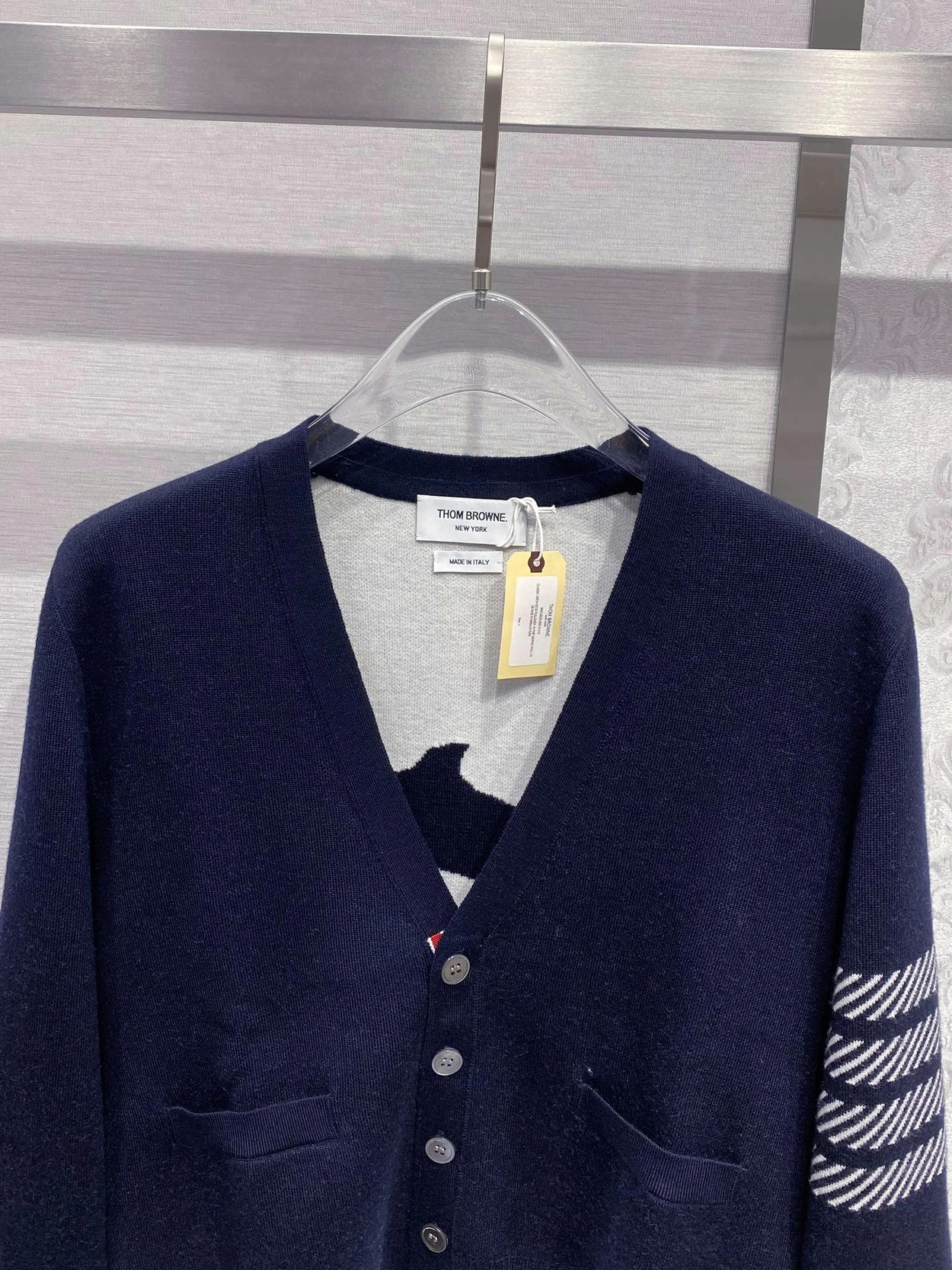 톰브라운 돌핀 아이콘 브이넥 가디건 > 의류