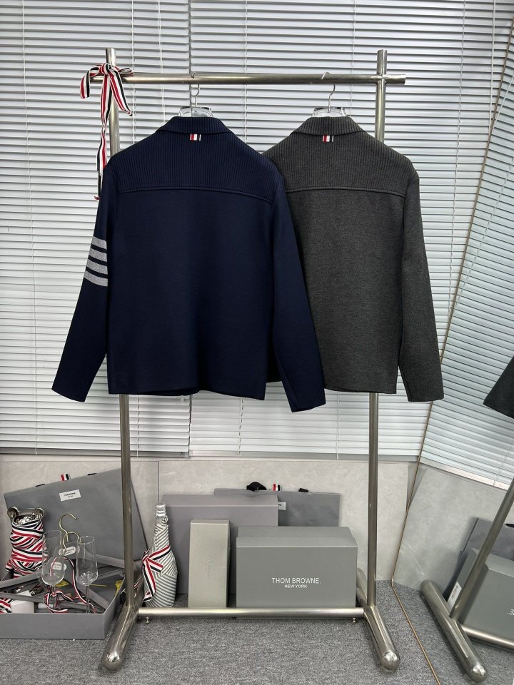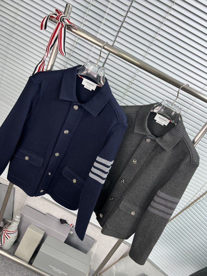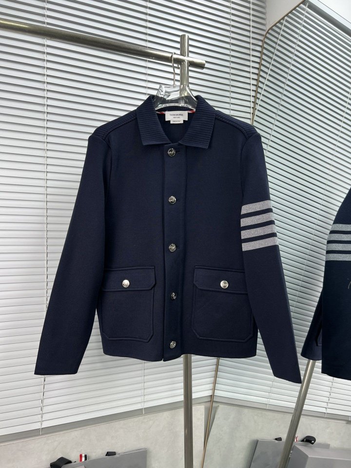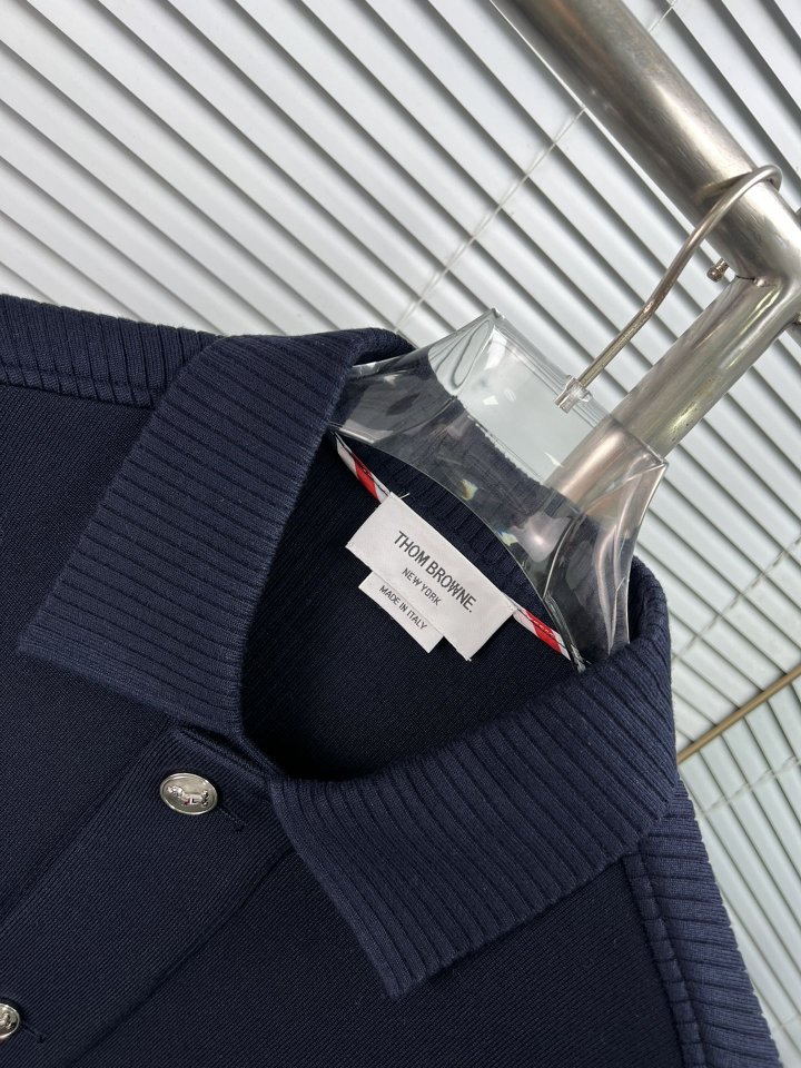 THOM BROWNE 톰브라운 사선완장 폴로 칼라 캐시미어 니트 자켓 > 의류