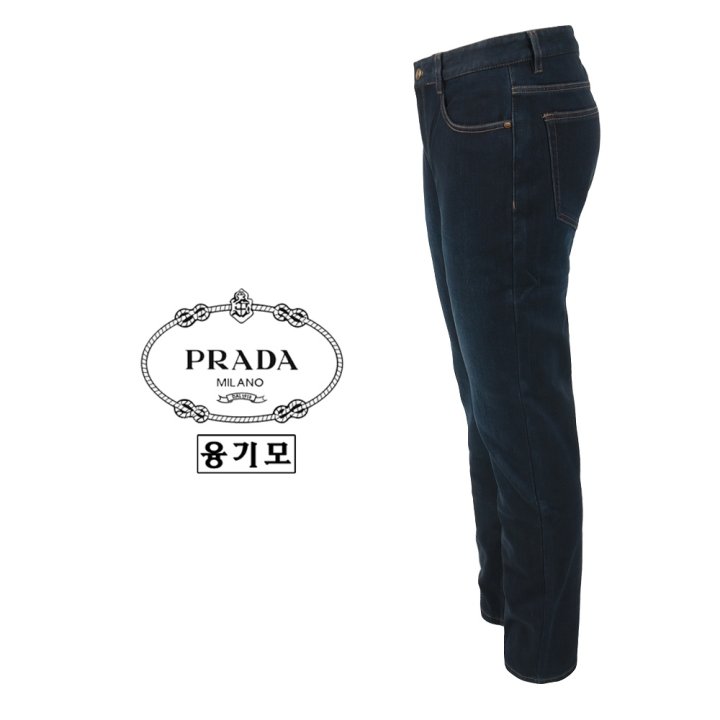PRADA 프라다 스틸 로고 진청 슬림 일자진 > 의류