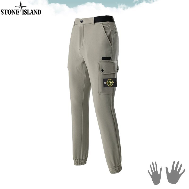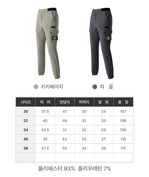 STONE ISLAND 스톤아일랜드 슬림핏 하프 밴딩 기모 카고 팬츠 > 의류