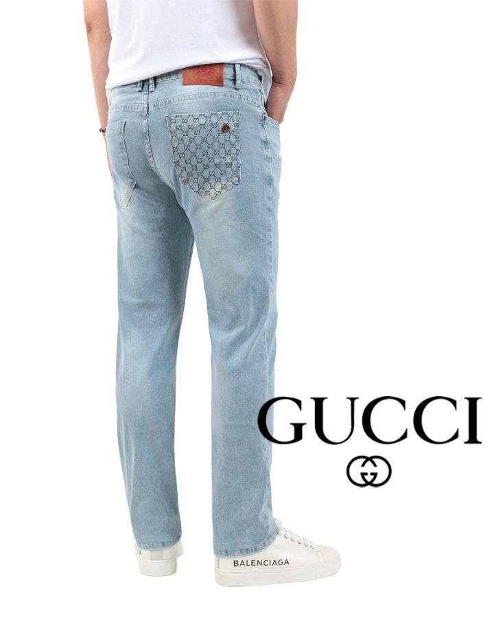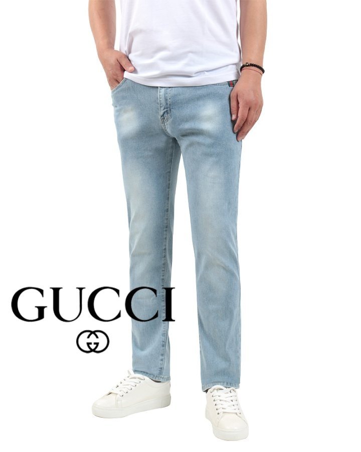 GUCCI 구찌 자가드 포켓 스틸 연청 슬림진 > 의류