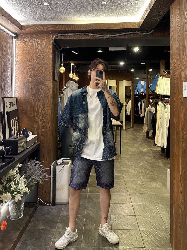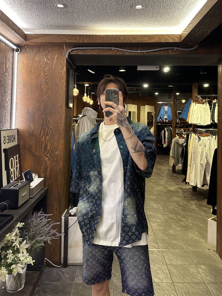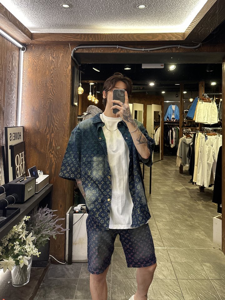 LOUIS VUITTON 루이비통 레인보우 자수 모노그램 하프 데님 > 의류