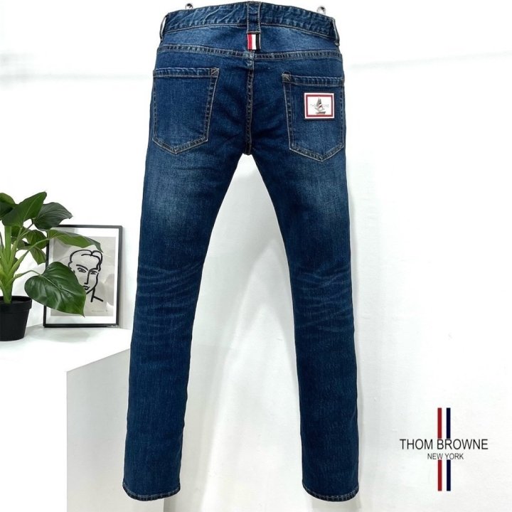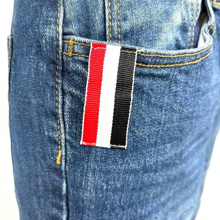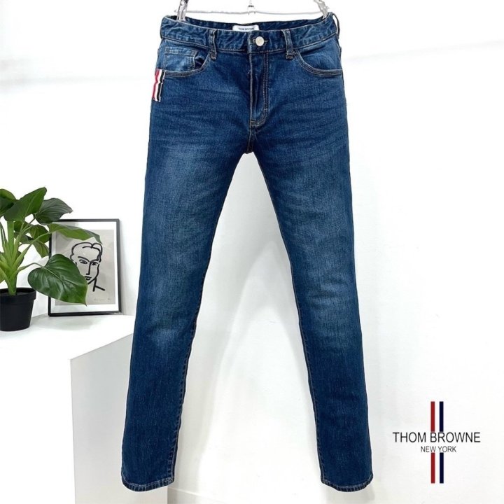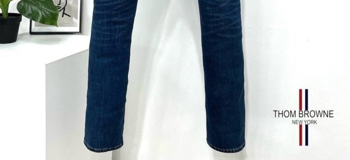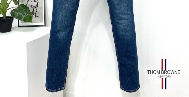 Thom Browne 톰브라운 신상 패치 진청 슬림진 > 의류
