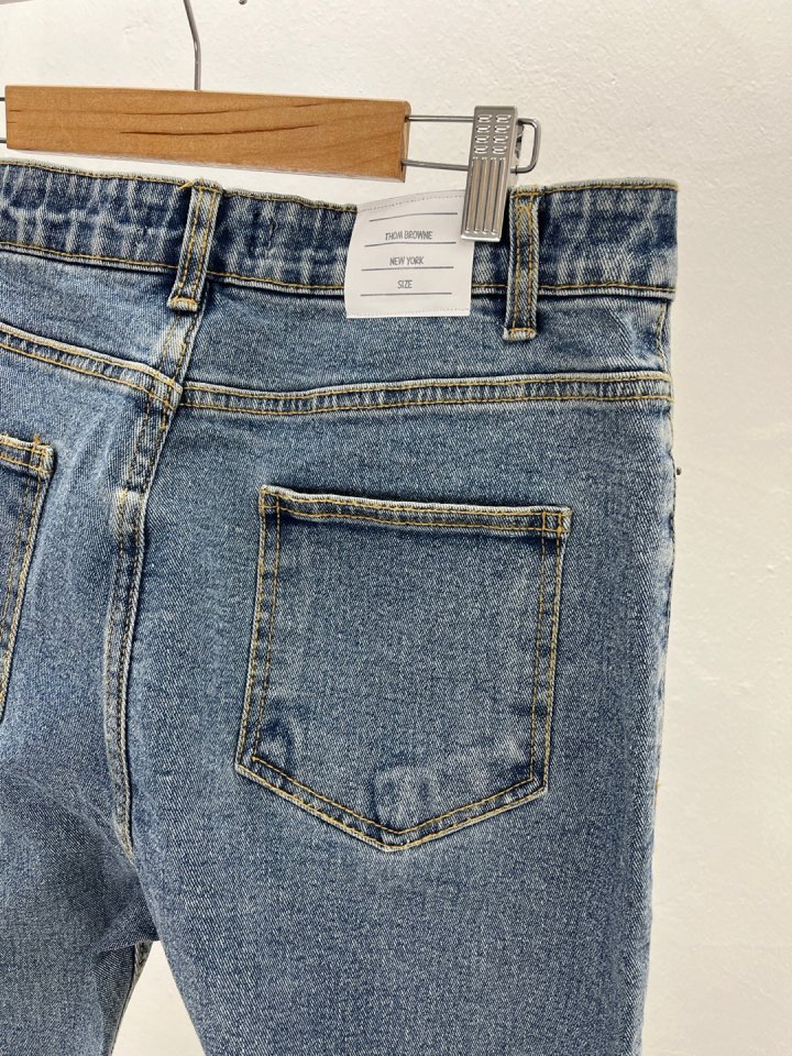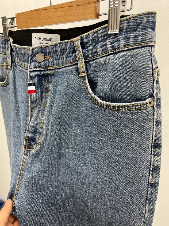 Thom Browne 톰브라운 슬림핏 테이퍼드 스판 청바지 > 의류
