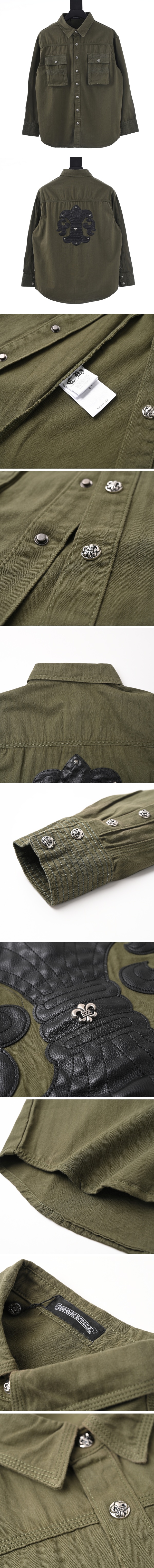 크롬하츠 스카우트 레더 와펜 카키 커버 포켓 셔츠 > 의류