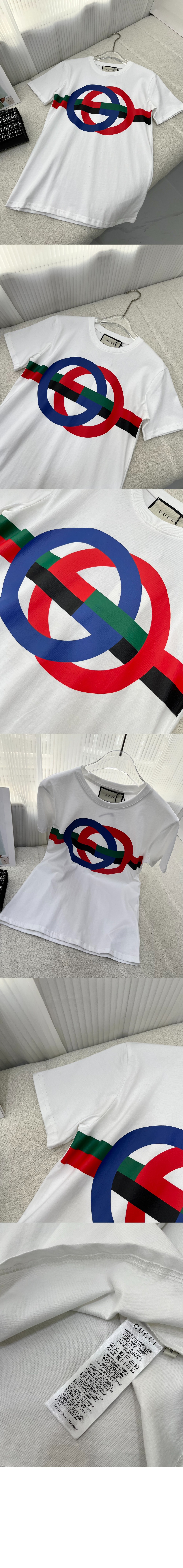구찌 라운드 GG 프린트 코튼 티셔츠 548334