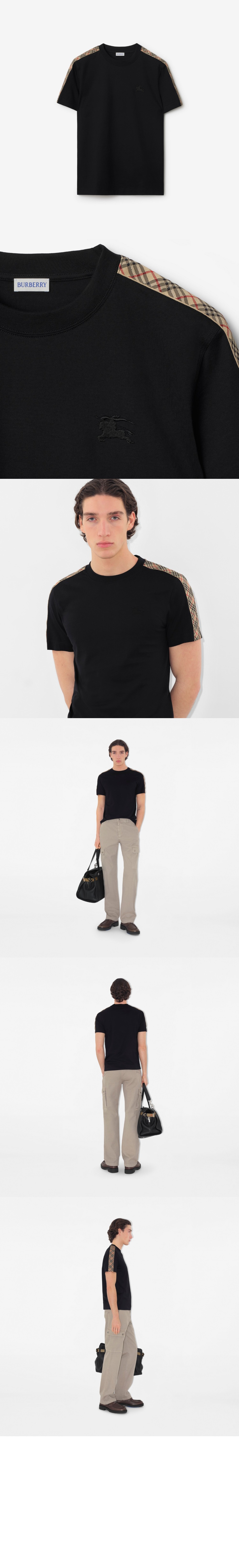 버버리 체크 트리밍 코튼 티셔츠 81062481