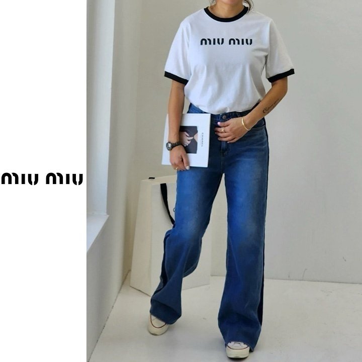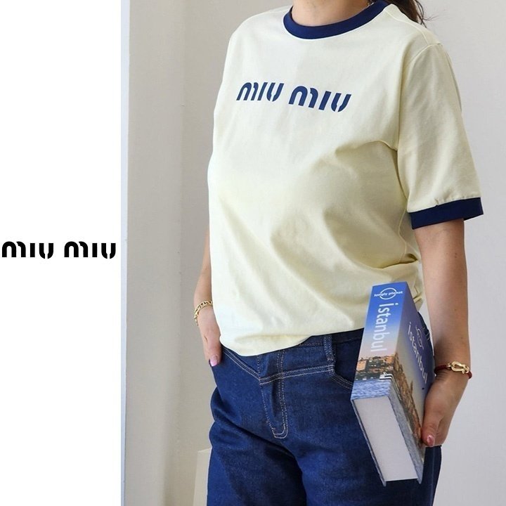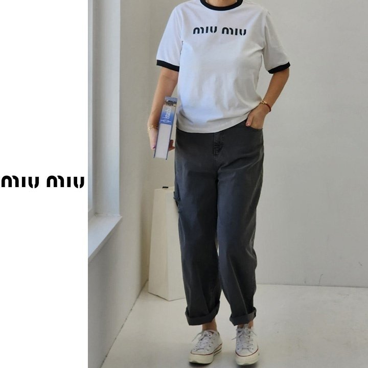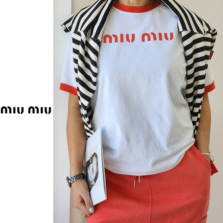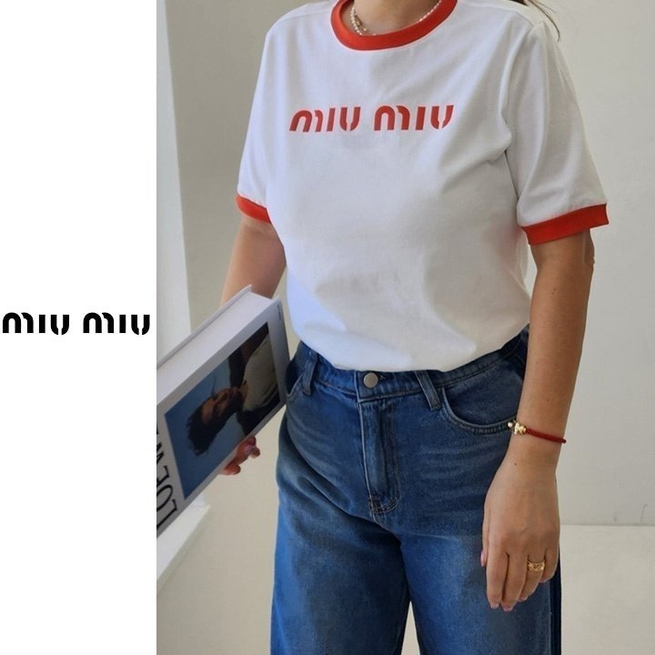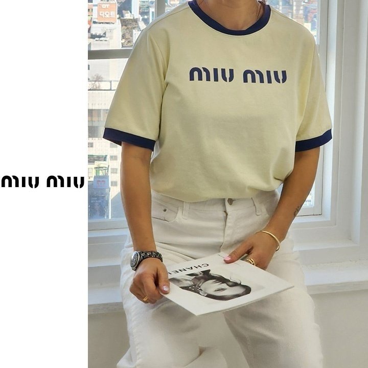 Miumiu 미우미우 배색 레터링 티셔츠 > 의류