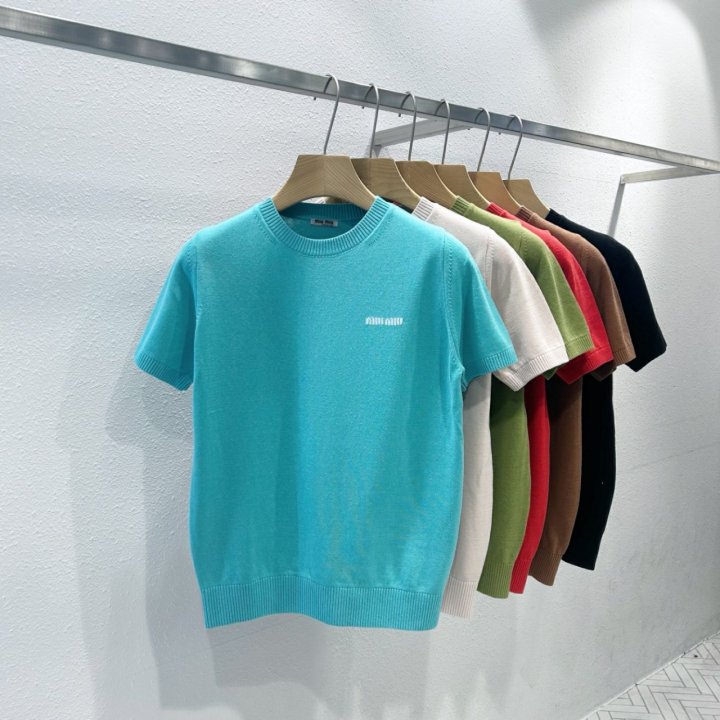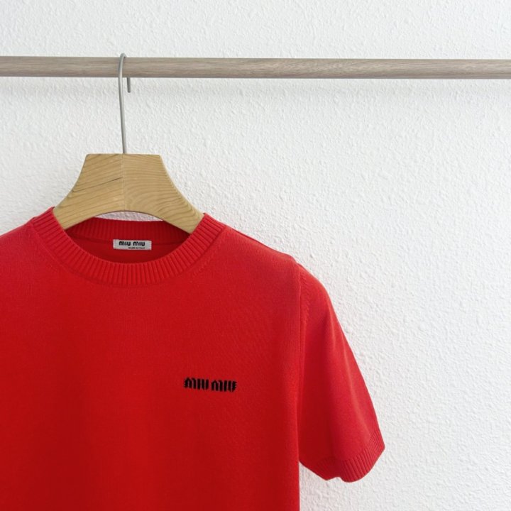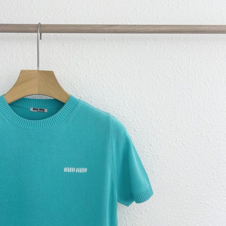 Miumiu 미우미우 여성 라운드 니트 반팔 > 의류