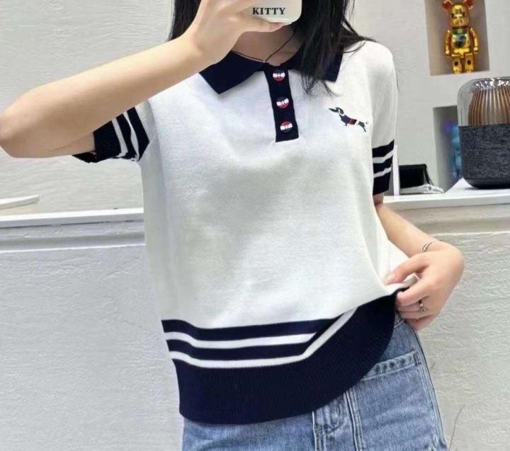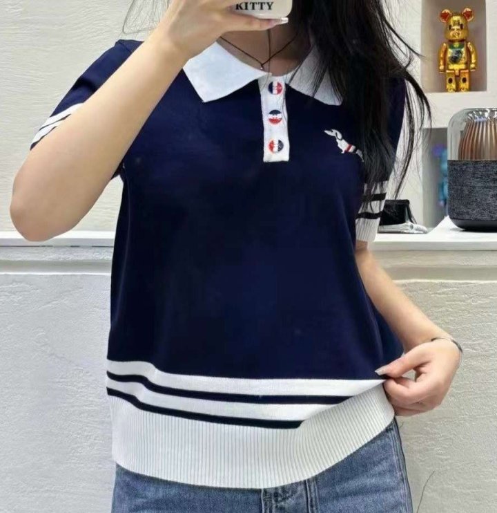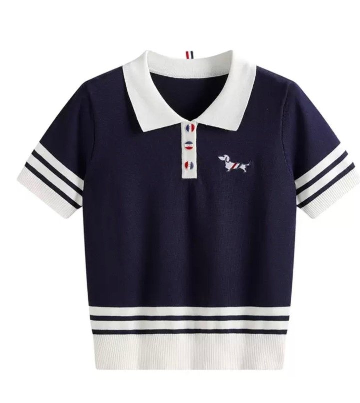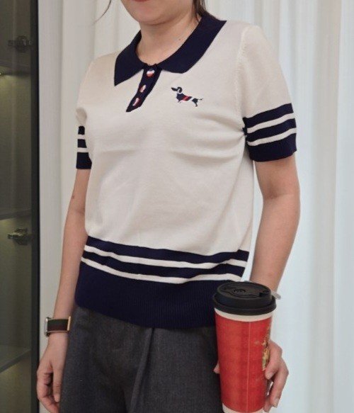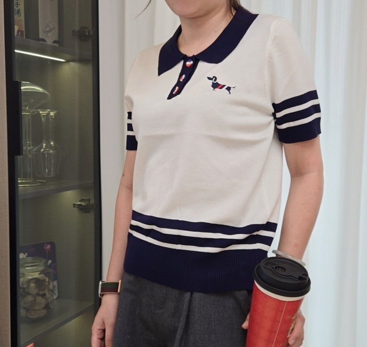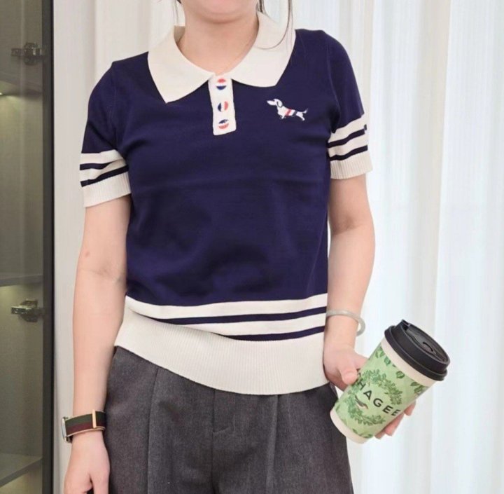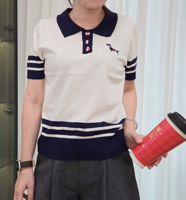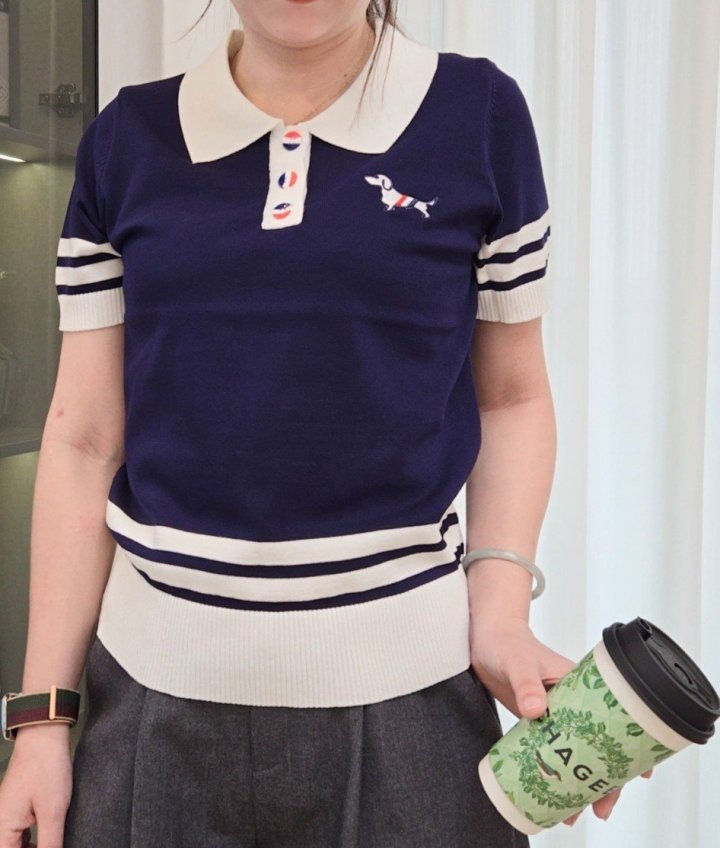 THOM BROWNE 톰브라운 끝배색 카라 반팔 니트 > 의류