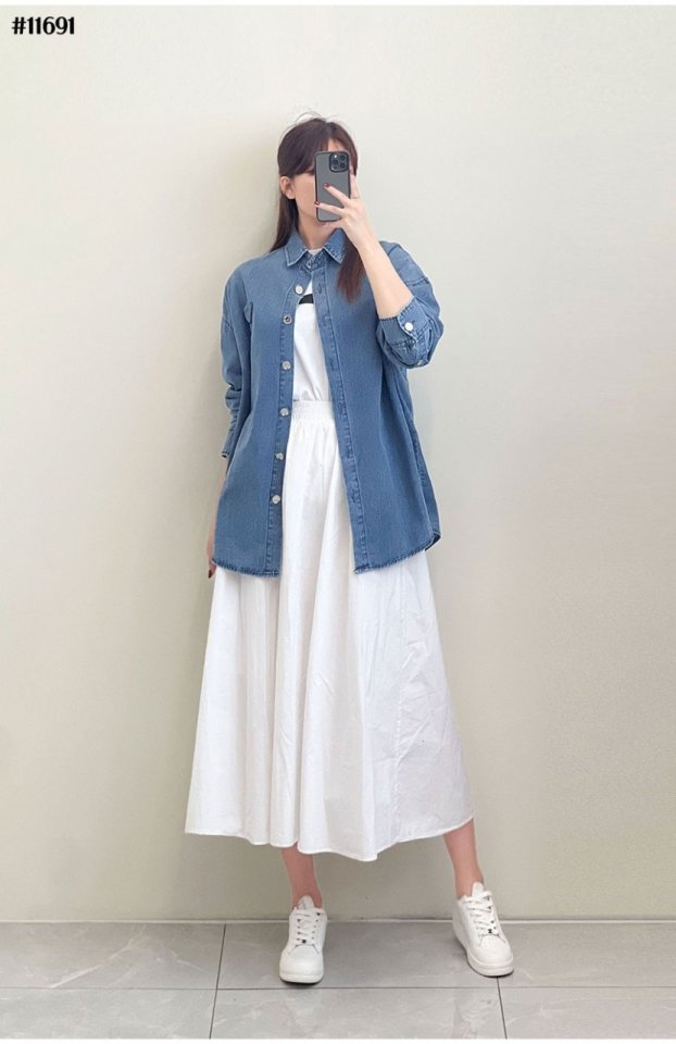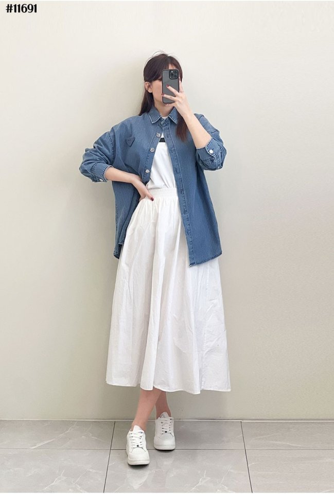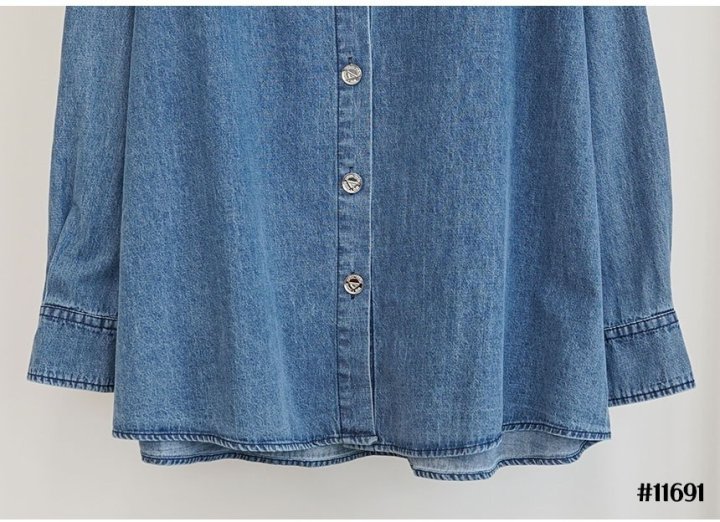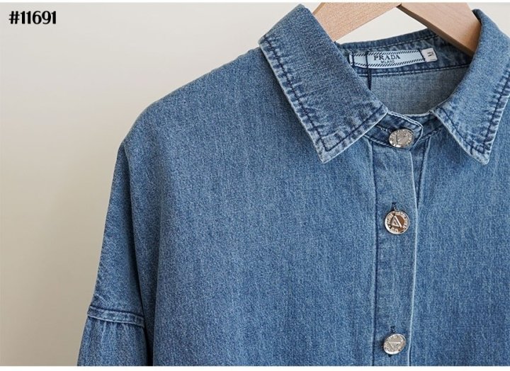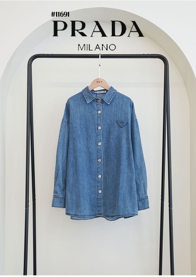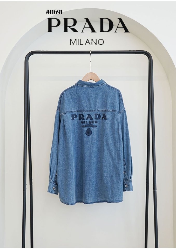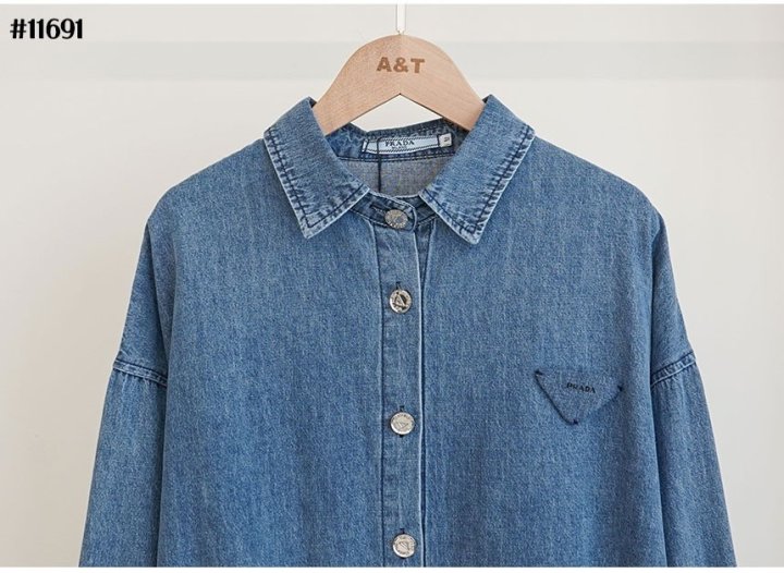 PRADA 프라다 여성 삼각 데님 로고 루즈핏 데님 셔츠 > 의류