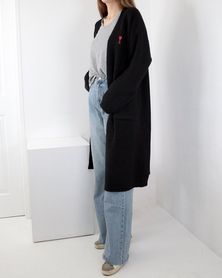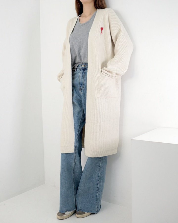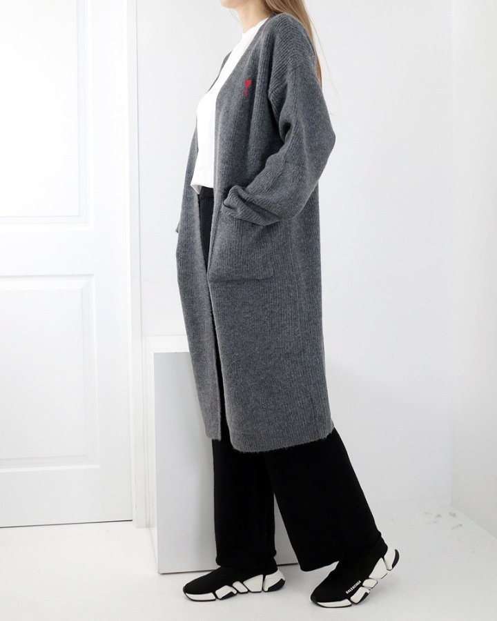 AMI 아미 하트 자수 오픈 가디건 > 의류