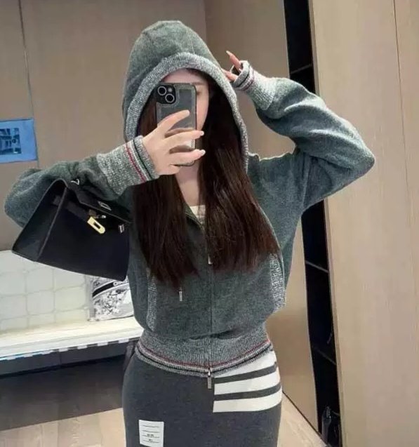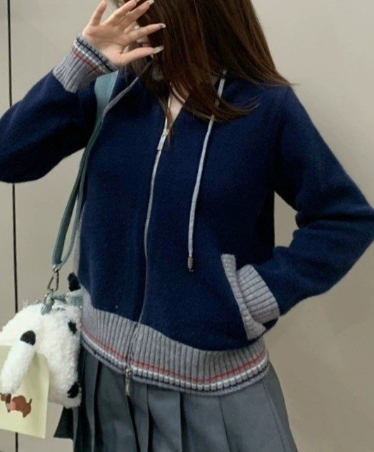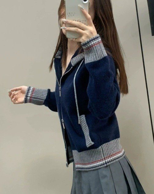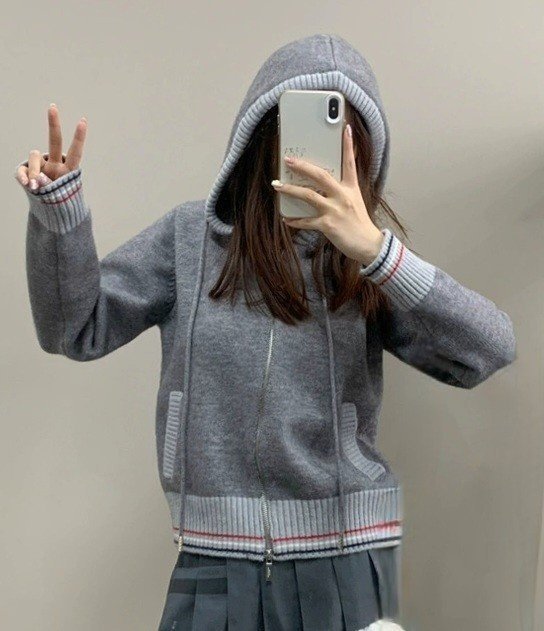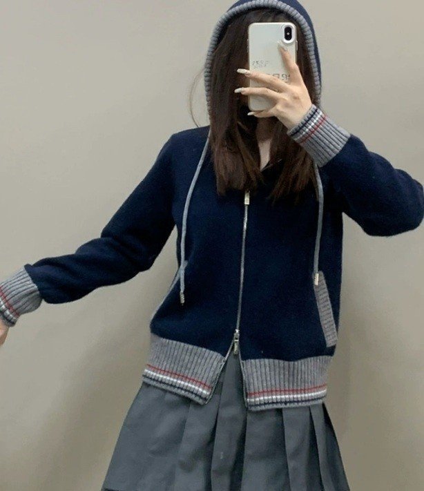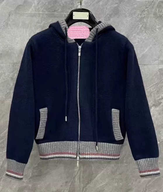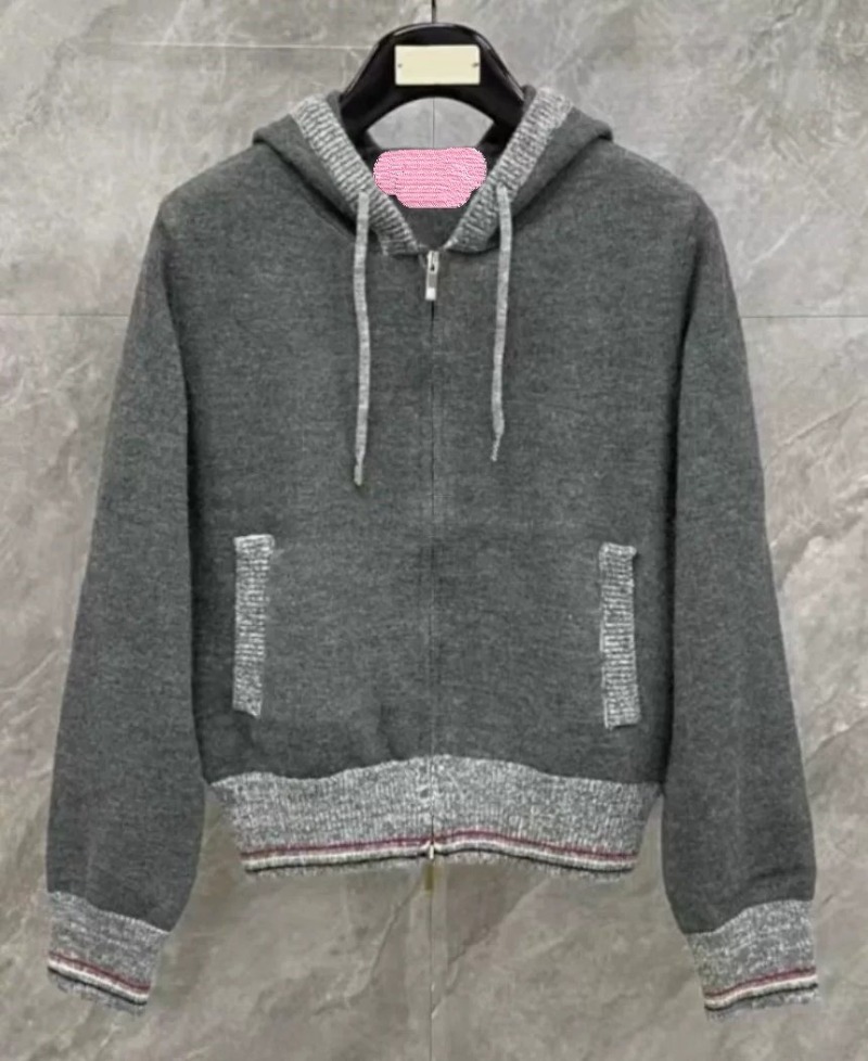 THOM BROWNE 톰브라운 끝삼선 배색 후드 집업 니트 > 의류
