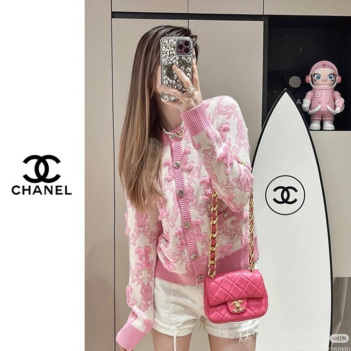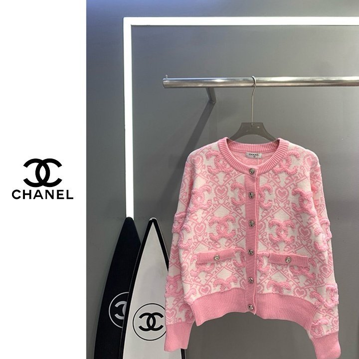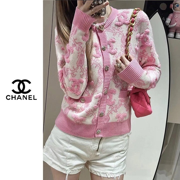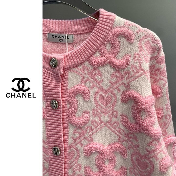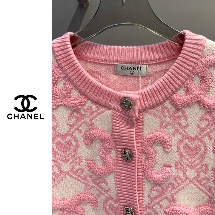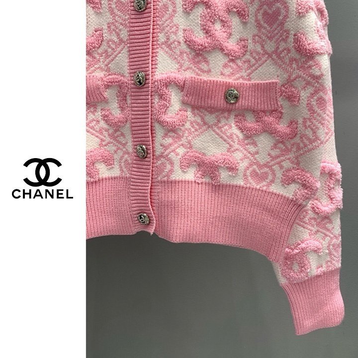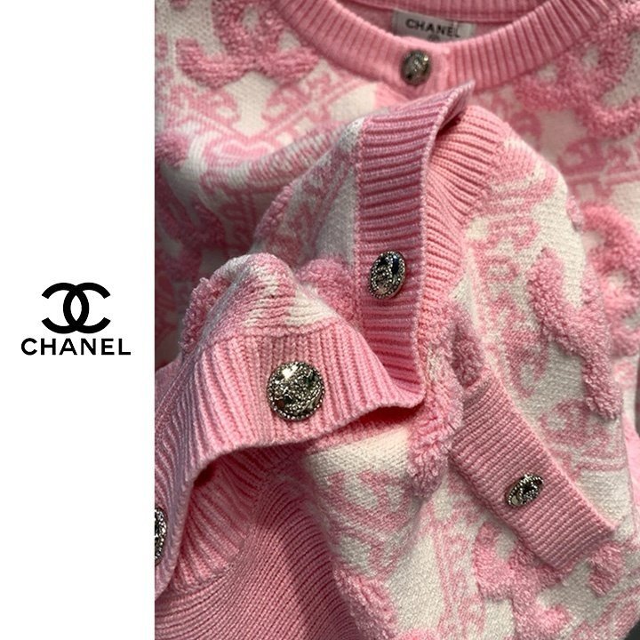 CHANEL 샤넬 핑크 엠보로고 가디건(수입) > 의류