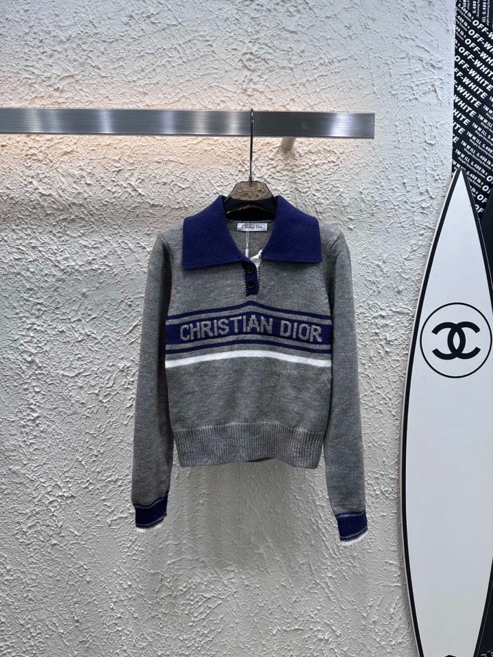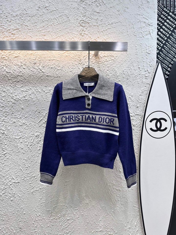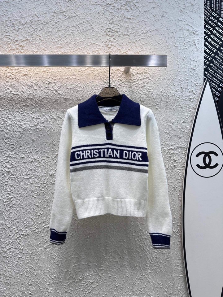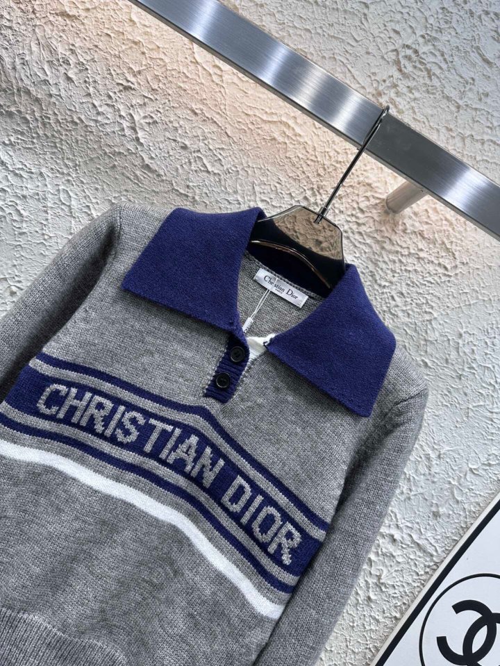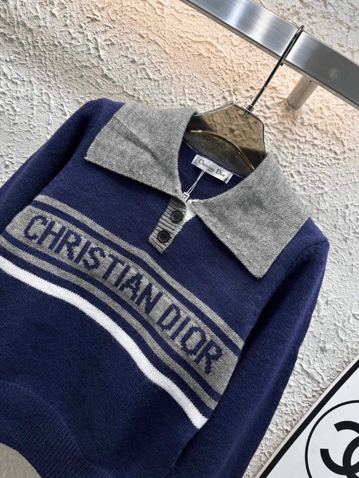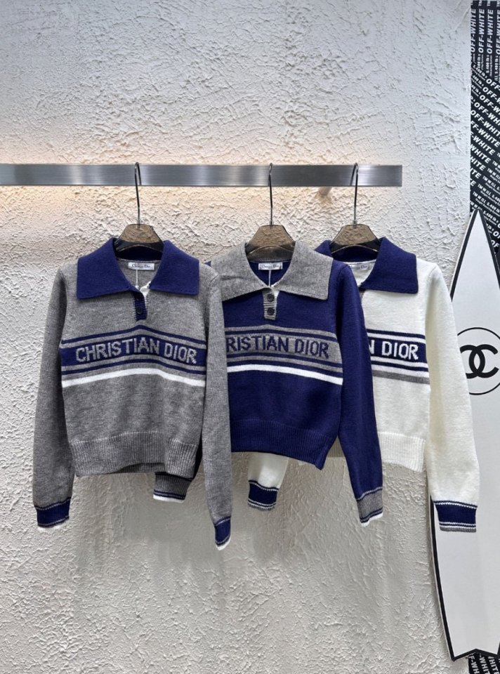 Dior 디올 도톰 배색 풀오버 카라 니트