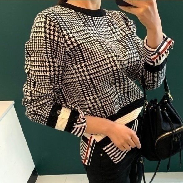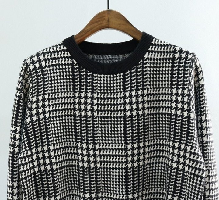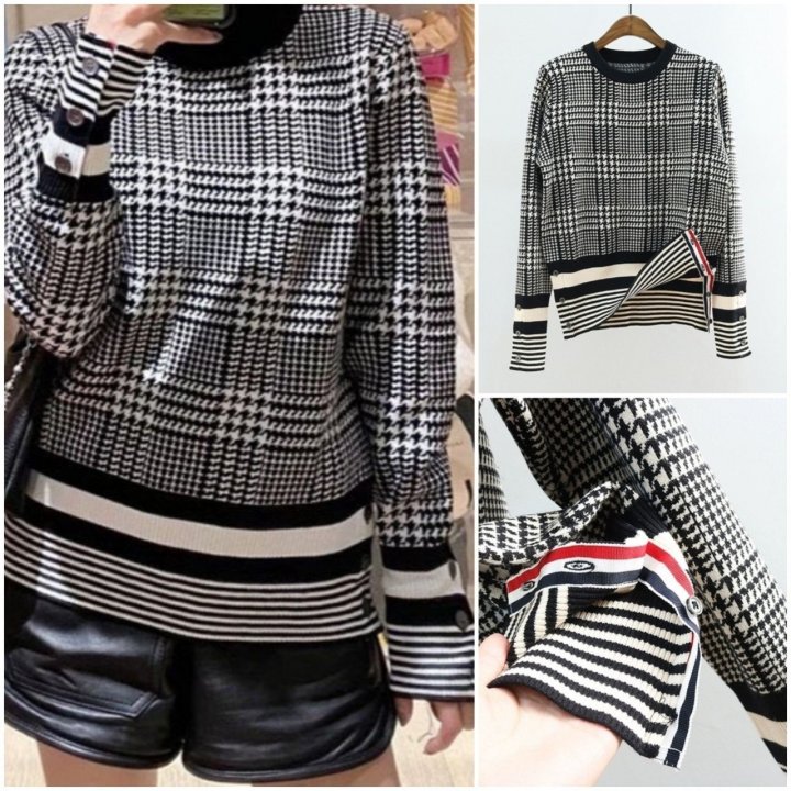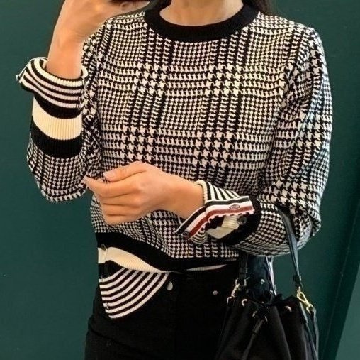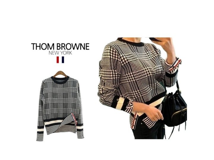 THOM BROWNE 톰브라운 캐시미어 체크 하운드 라운드니트 > 의류