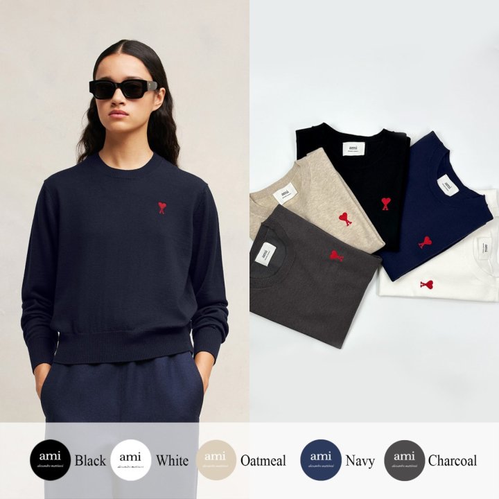 AMI 아미 드 꾀흐 엠브로이더리 크루넥 니트 (여성) > 의류
